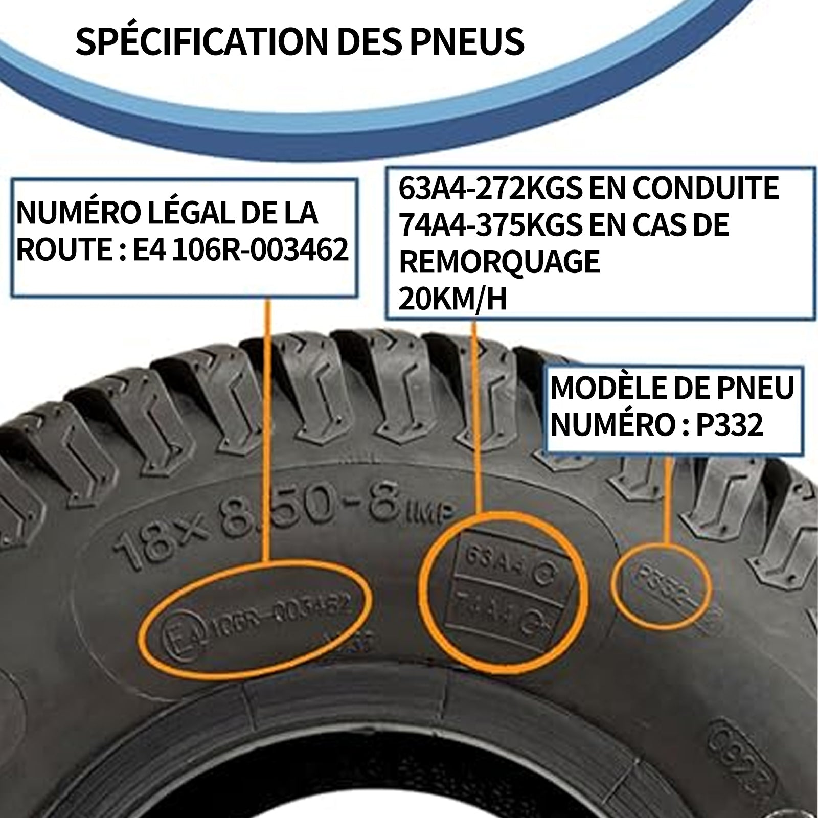 Pneu 18x9.50-8 pneu pour tracteur à pelouse sans chambre à air tondeuse pneu sur tondeuse de jardin Jardin lawnmower remorque pneu