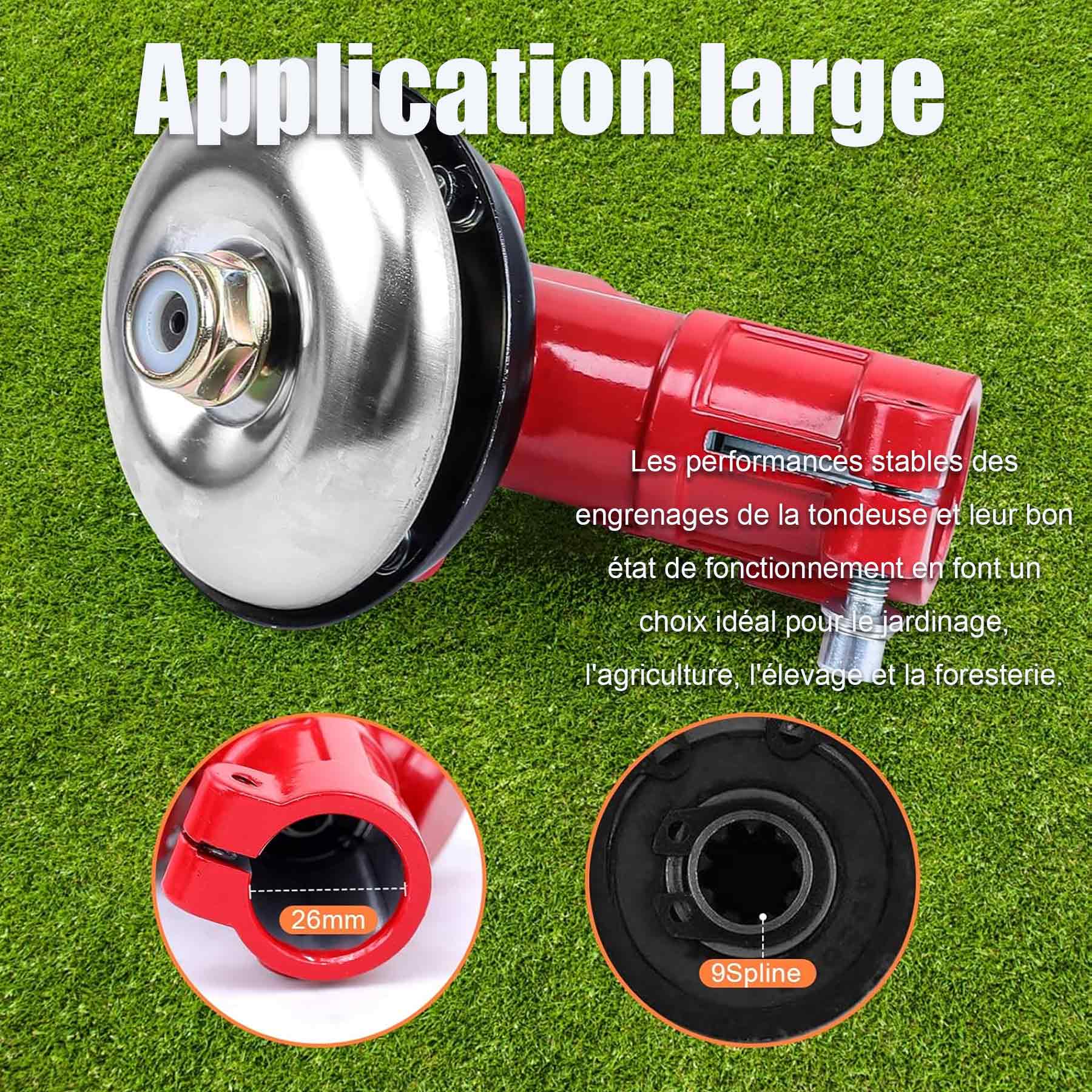 Renvoi d'angle debroussailleuse 26mm rond de 9 dents tête d'engrenage debroussailleuse universelle pour diverses outils de jardin
