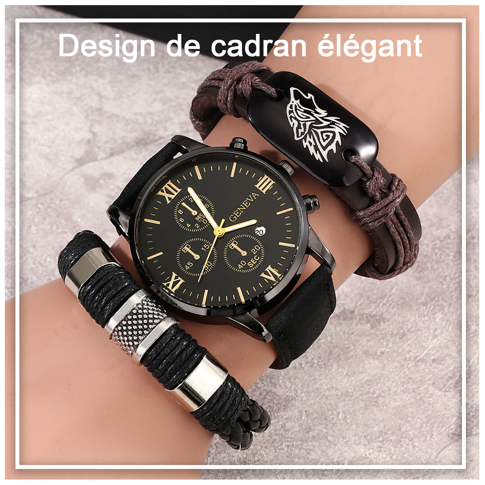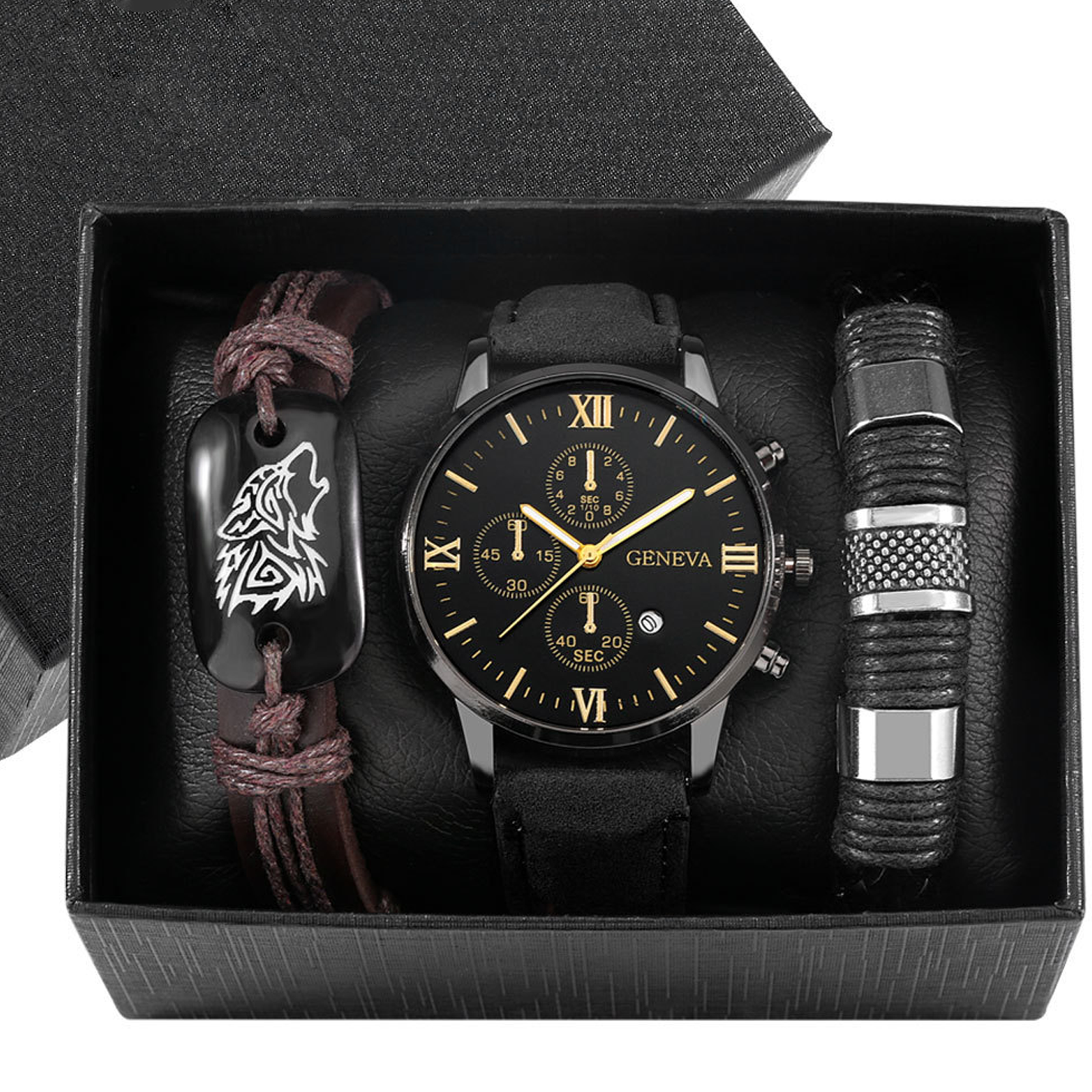 Coffret de montres haut de gamme pour hommes 3PCS montres à quartz pour hommes bracelet de perles cadeau pour la fête des pères