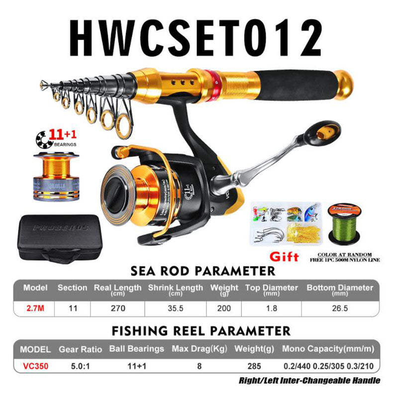 Spécifications : canne de 2,7 mètres + moulinet en métal 3000 + ensemble cadeau de pêche