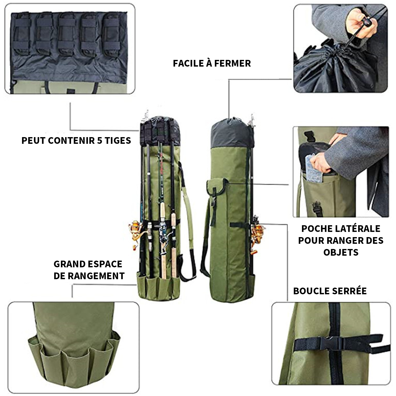 Sac de peche 123x34cm sac a canne a peche sac de pêche portable etanche multifonction housse cannes a pêche sac canne à pêche vert