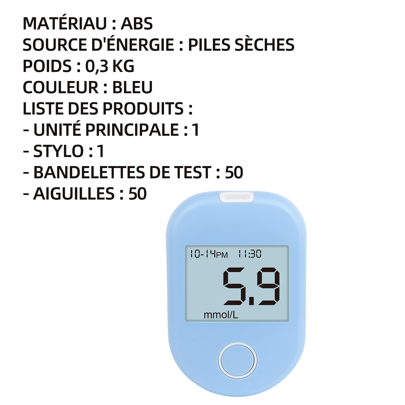 Instrument de mesure ABS surveillance de la santé avec 1 unité principale - 1 stylo de prélèvement - 50 bandelettes - 50 aiguilles