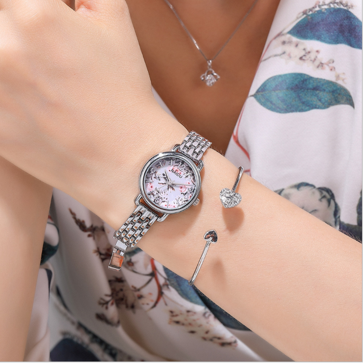 TD® Montre À Quartz De Cadeau D'Hommes Et Femmes Diamant Dames Ceinture D'Acier Mode Tempérament Une montre de paysage: argent