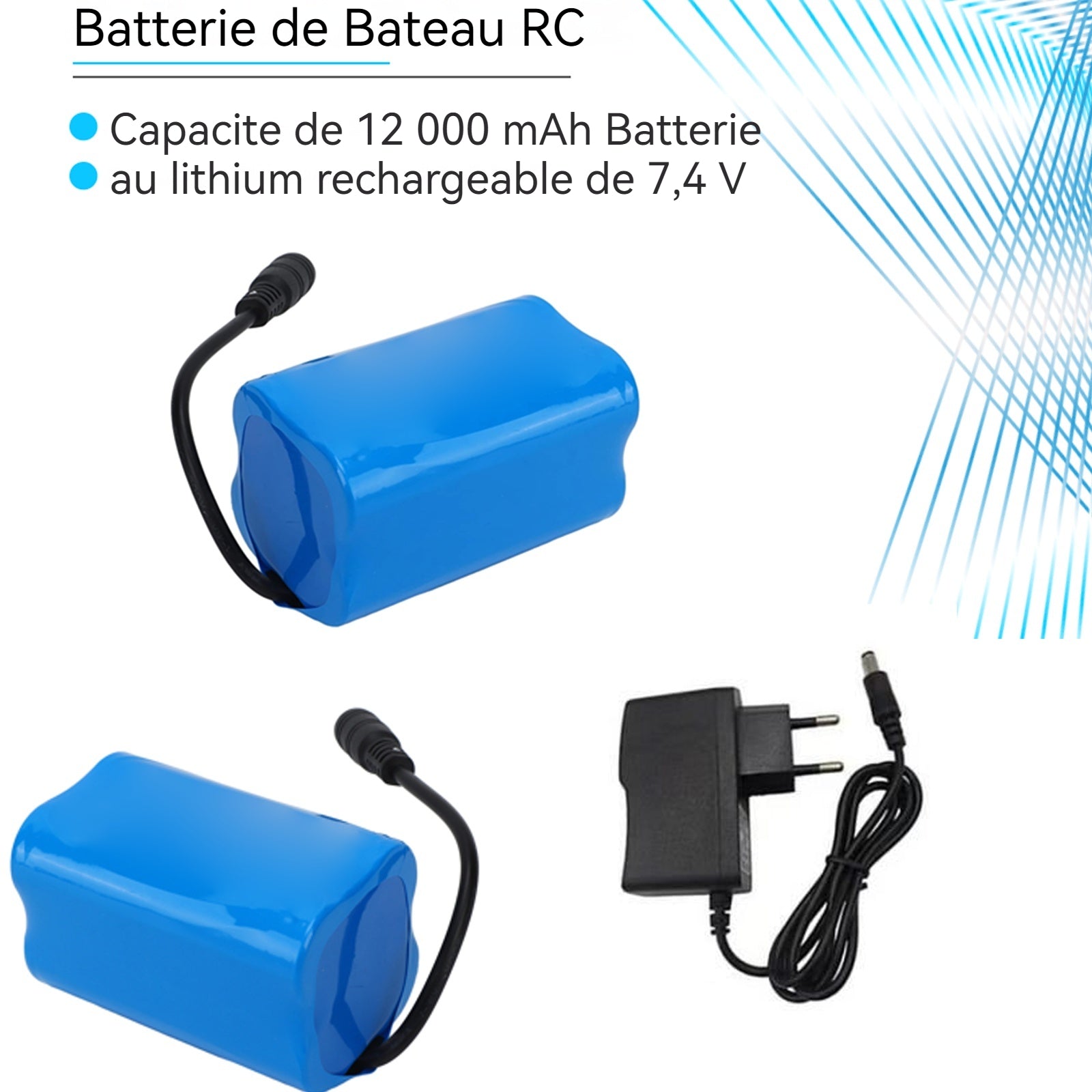 Batterie de bateau de nidification rc batterie 18650 7.4v 12800mah batterie au lithium rechargeable avec 2 batteries et 1 chargeur