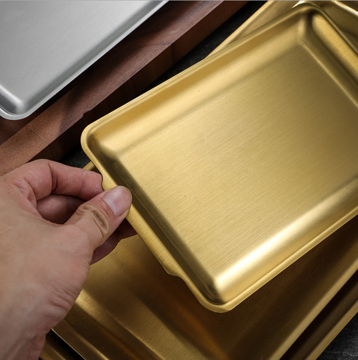 Assiette rectangulaire en acier inoxydable 304 épaissie Assiette de barbecue coréenne, assiette à sushi, plateau à fond plat