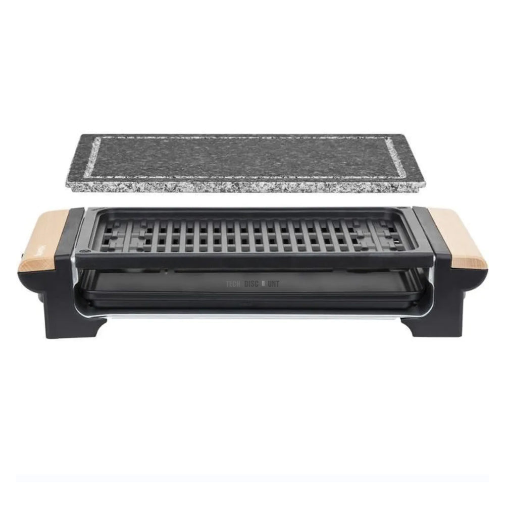Gril électrique de table 1300 W Bac de récupération amovible Grande surface de cuisson Réglage de la température à plusieurs niveaux