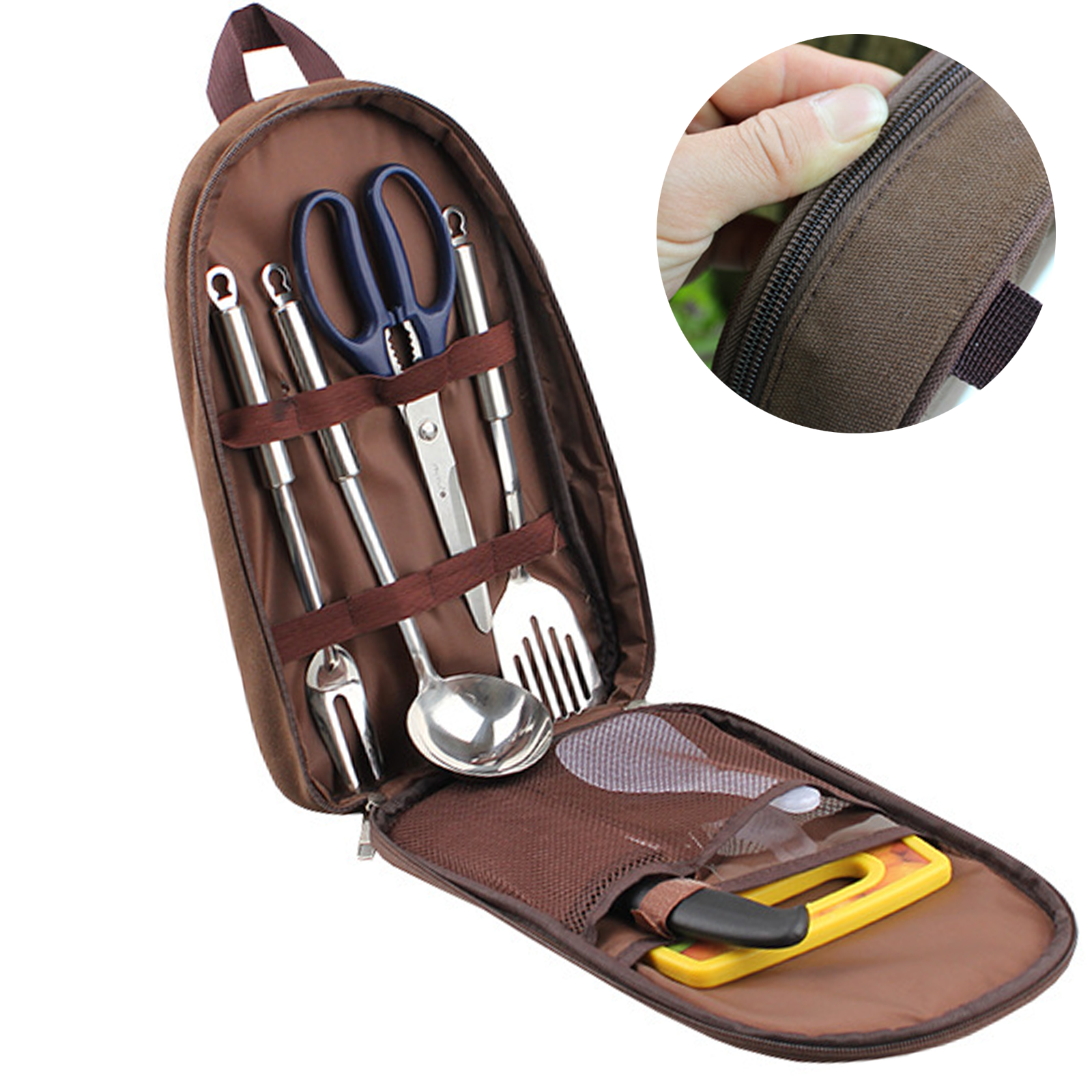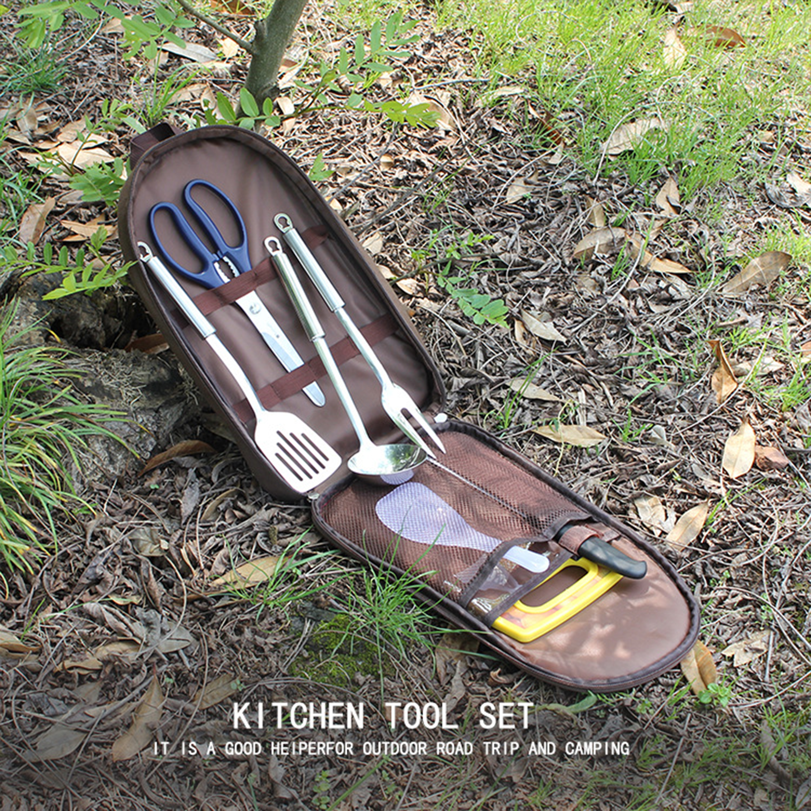 1. Un ensemble d'ustensiles de cuisine pouvant être utilisé à l'extérieur ou à la maison.Il s'agit d'un ensemble composé de 7 ustensiles de cuisine différents, facile à transporter.