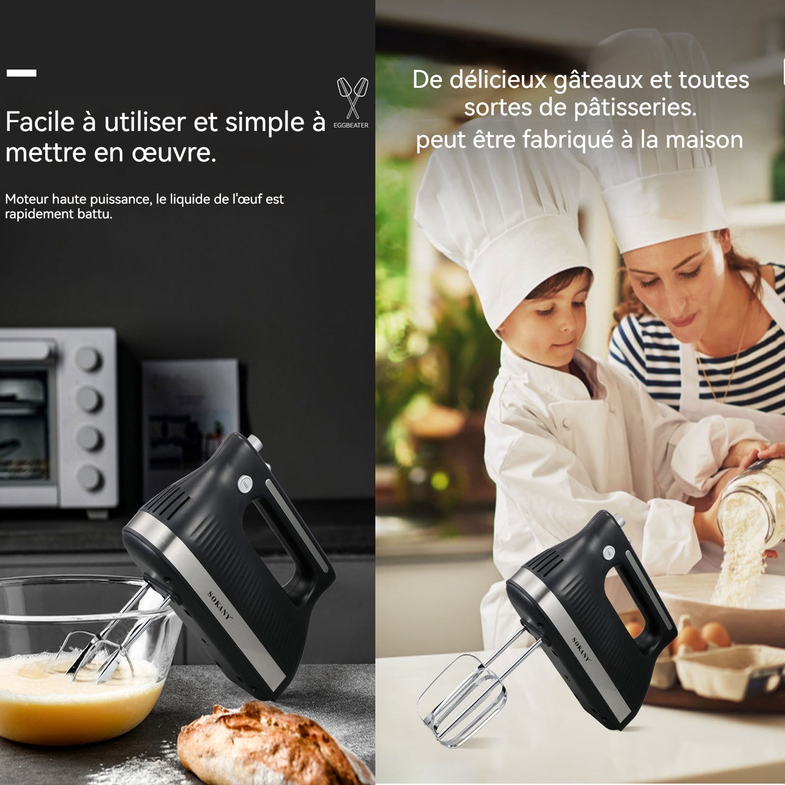 Batteur 300W avec 5 modes de travail avec 2 crochets pétrisseurs et 2 fouets pour la cuisson et les gâteaux batteur electrique
