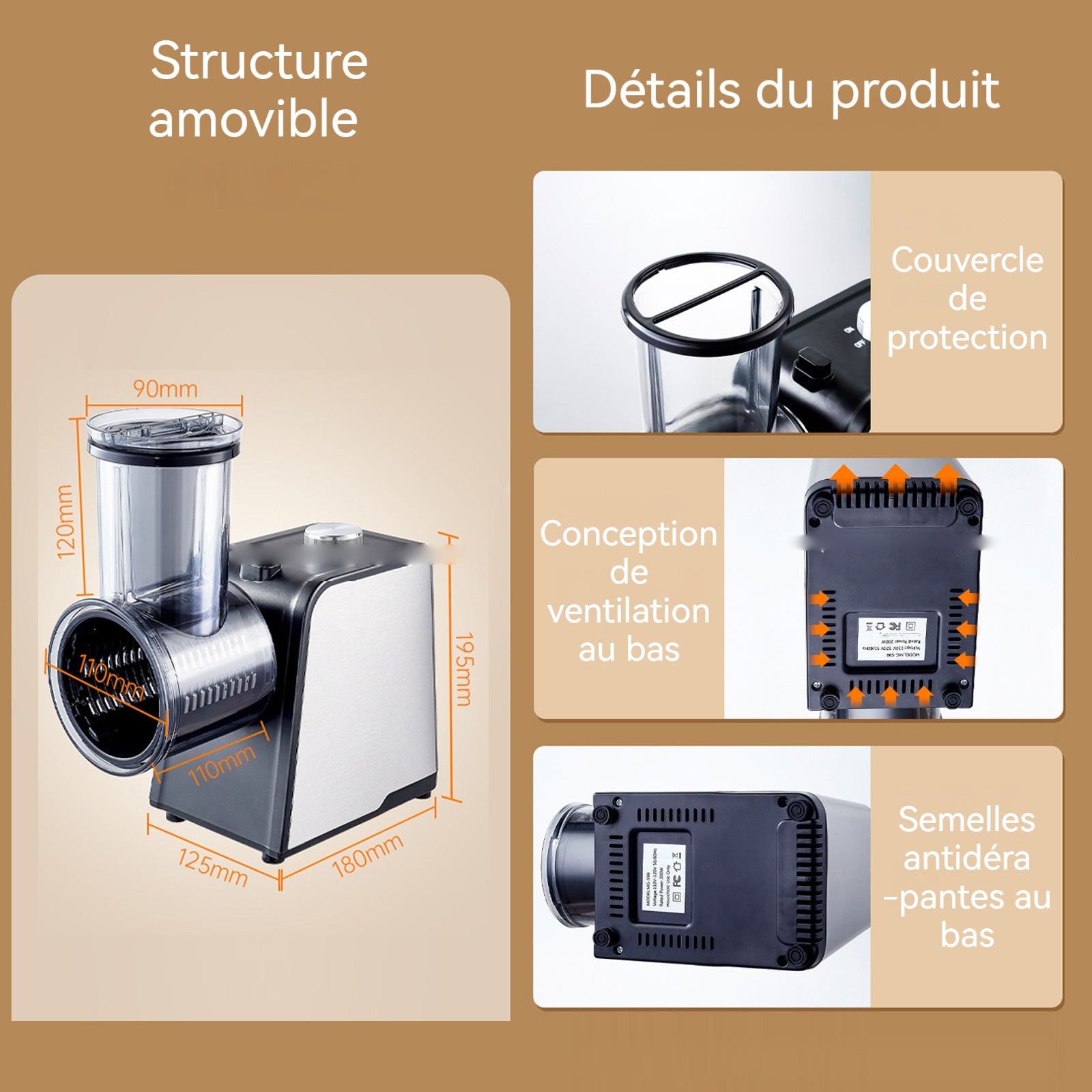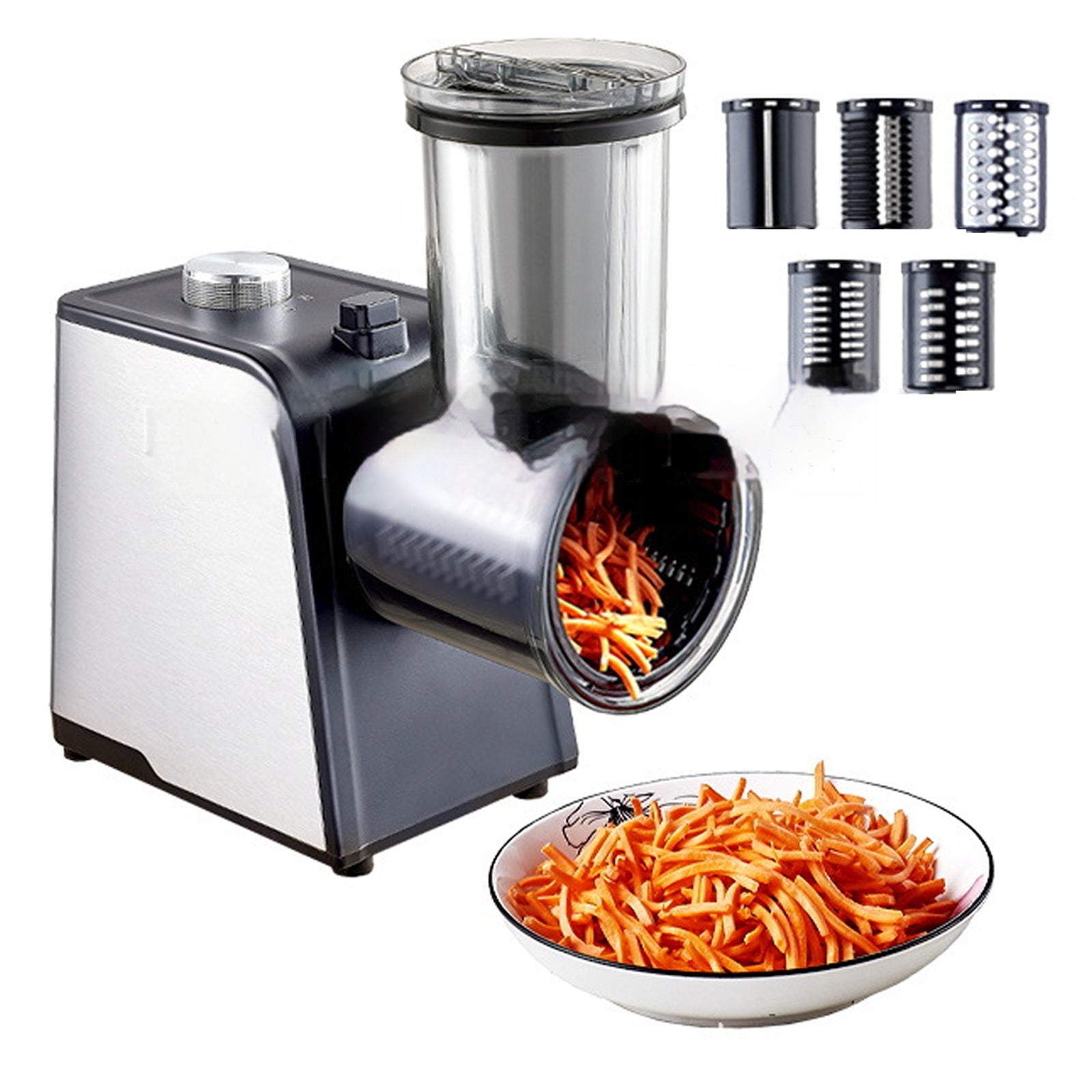 Coupe Légumes Électrique 19,5x18x12,5cm acier inoxydable cinq tubes amovibles et lavables multifonctionnel gain de temps Argent