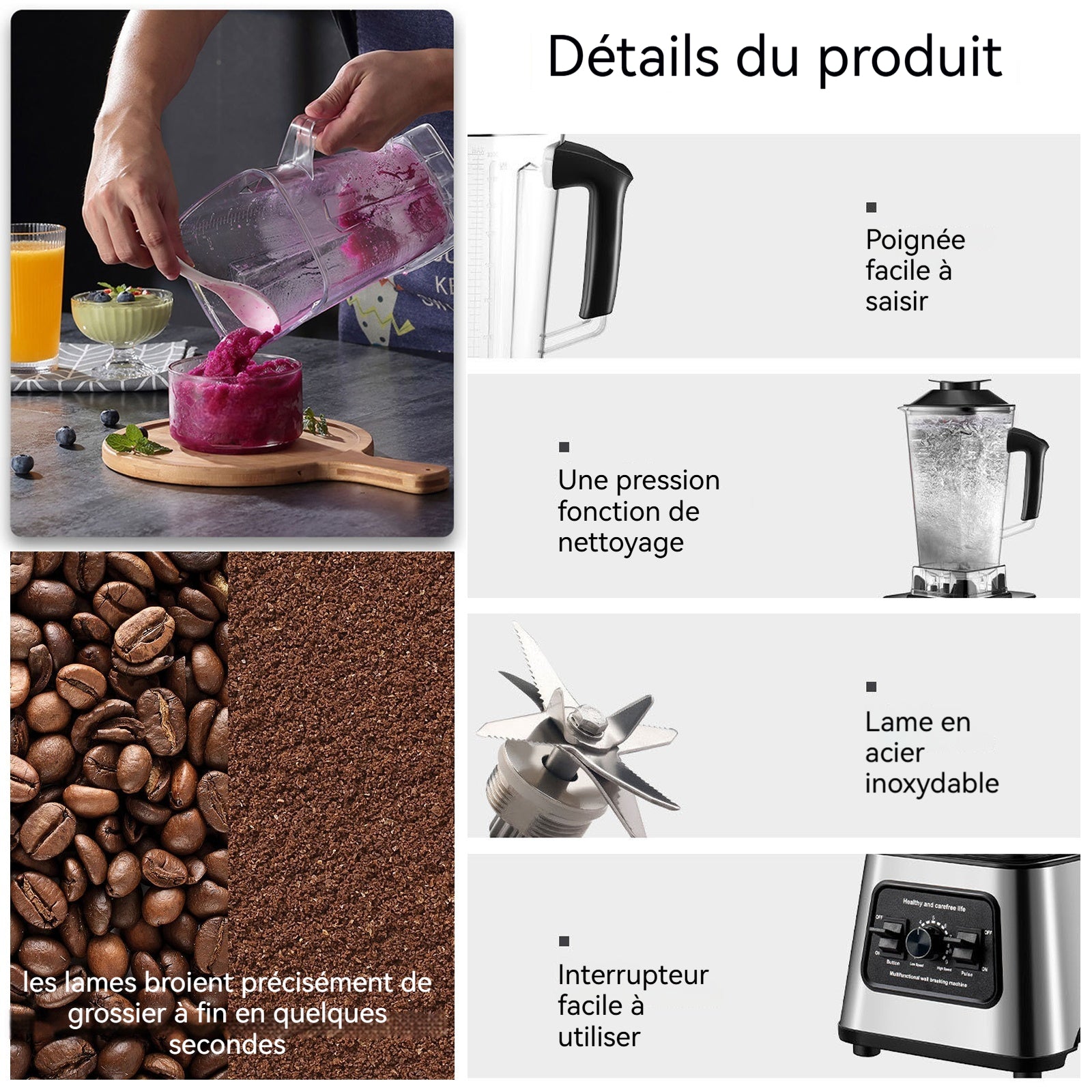 Mixeur 6000w 2.5L 3.25kg brise-mur entièrement automatique lame en acier fin haute qualité simple à utiliser puissant et rapide