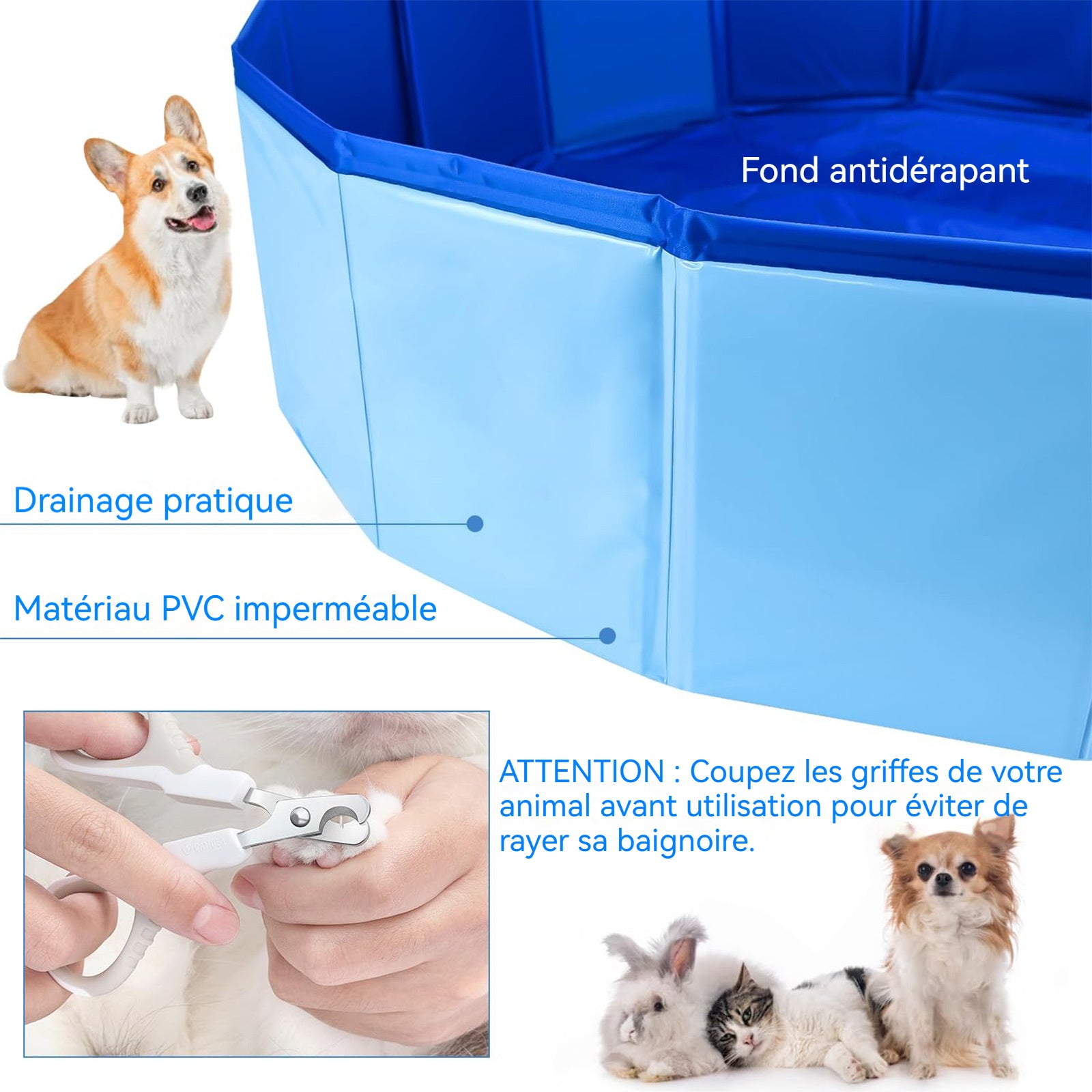 3, Structure durable : Les bords du bassin pour chiens sont renforcés avec une fonction anti-perforation, et le fond est en matériau antidérapant et résistant à l'usure, garantissant stabilité et durabilité