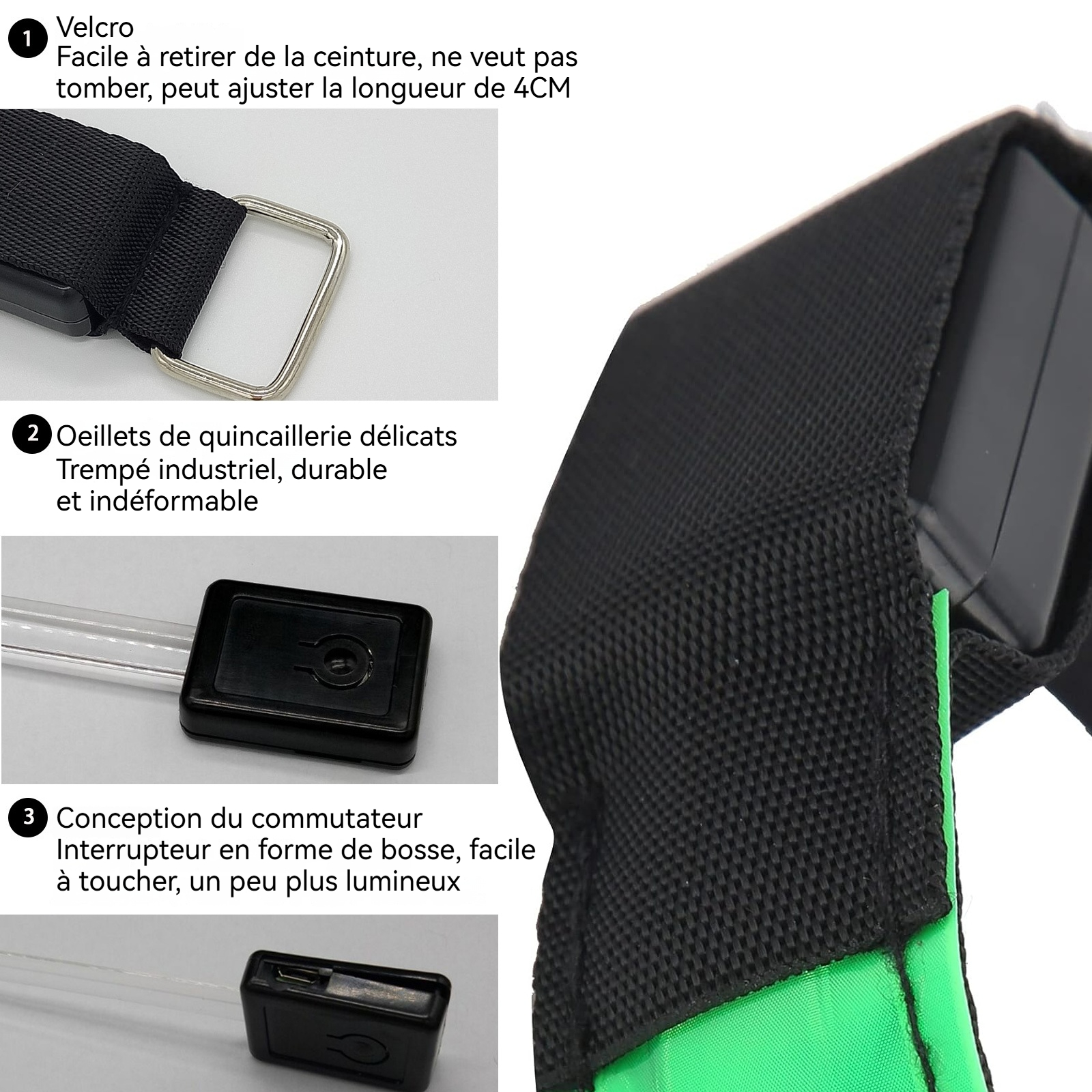 3. Autonomie prolongée : Ce brassard LED peut être utilisé en continu pendant environ 5 heures une fois complètement chargé, répondant aux besoins d'activités nocturnes prolongées.