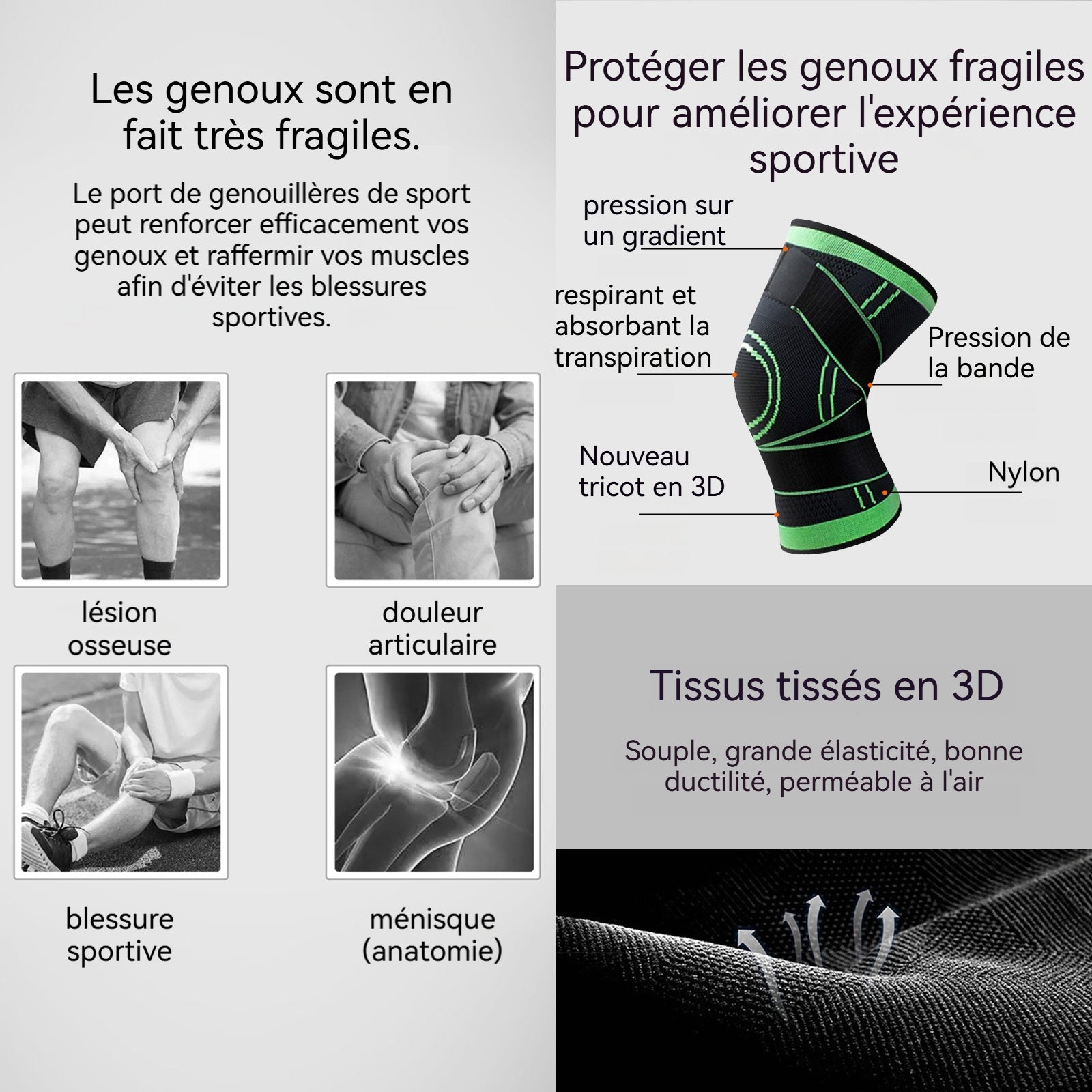 3. Protection pour divers sports : Notre genouillère de sport est spécialement conçue pour le basket-ball, le cyclisme, la course, le badminton et l'escalade, protégeant intégralement l'articulation du genou, réduisant les risques de blessures et améliorant la performance et la sécurité.