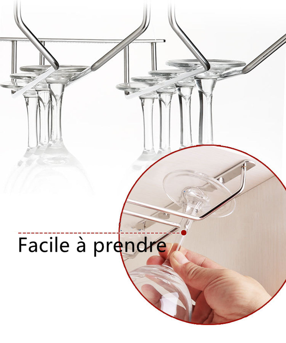 TD® Porte-verres à vin en acier inoxydable monté sur le dessus Porte-gobelet suspendu à trois rangées Verre à champagne à vin