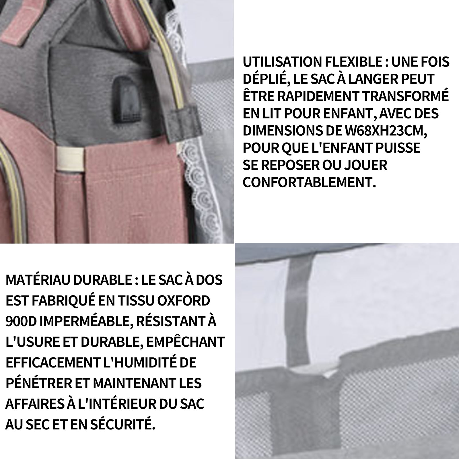 Sac à langer 31x20x41cm pour lit d'enfant sac à dos sacs à langer grande capacité sac à langer de voyage portable avec lit pliable