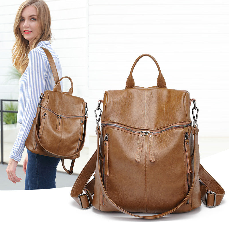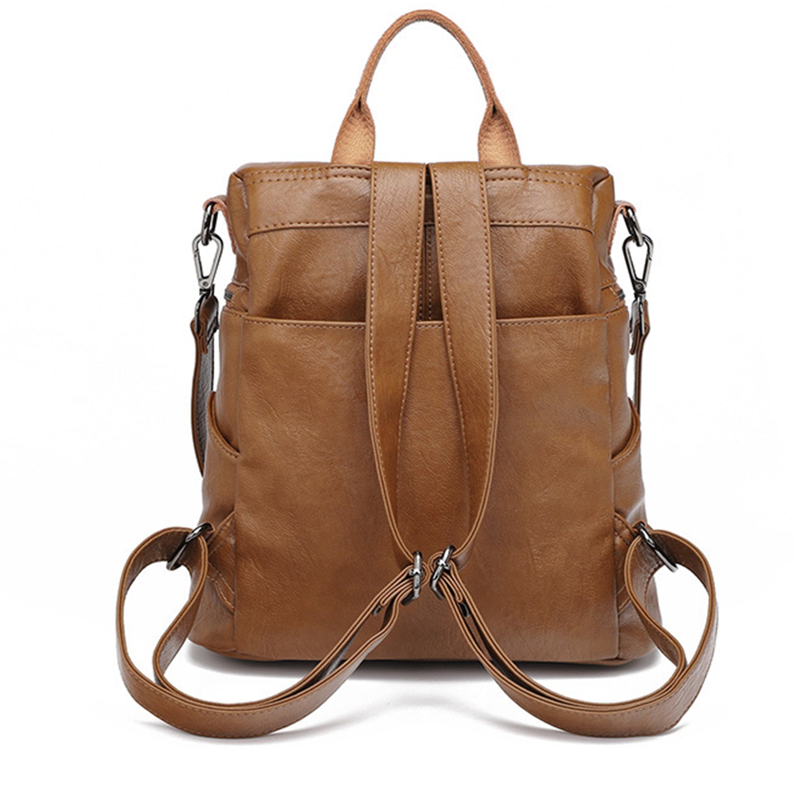 TD® Sac à dos dames sac en peau de mouton décontracté imperméable en cuir souple sac à dos sacs en cuir filles cadeaux de vacances