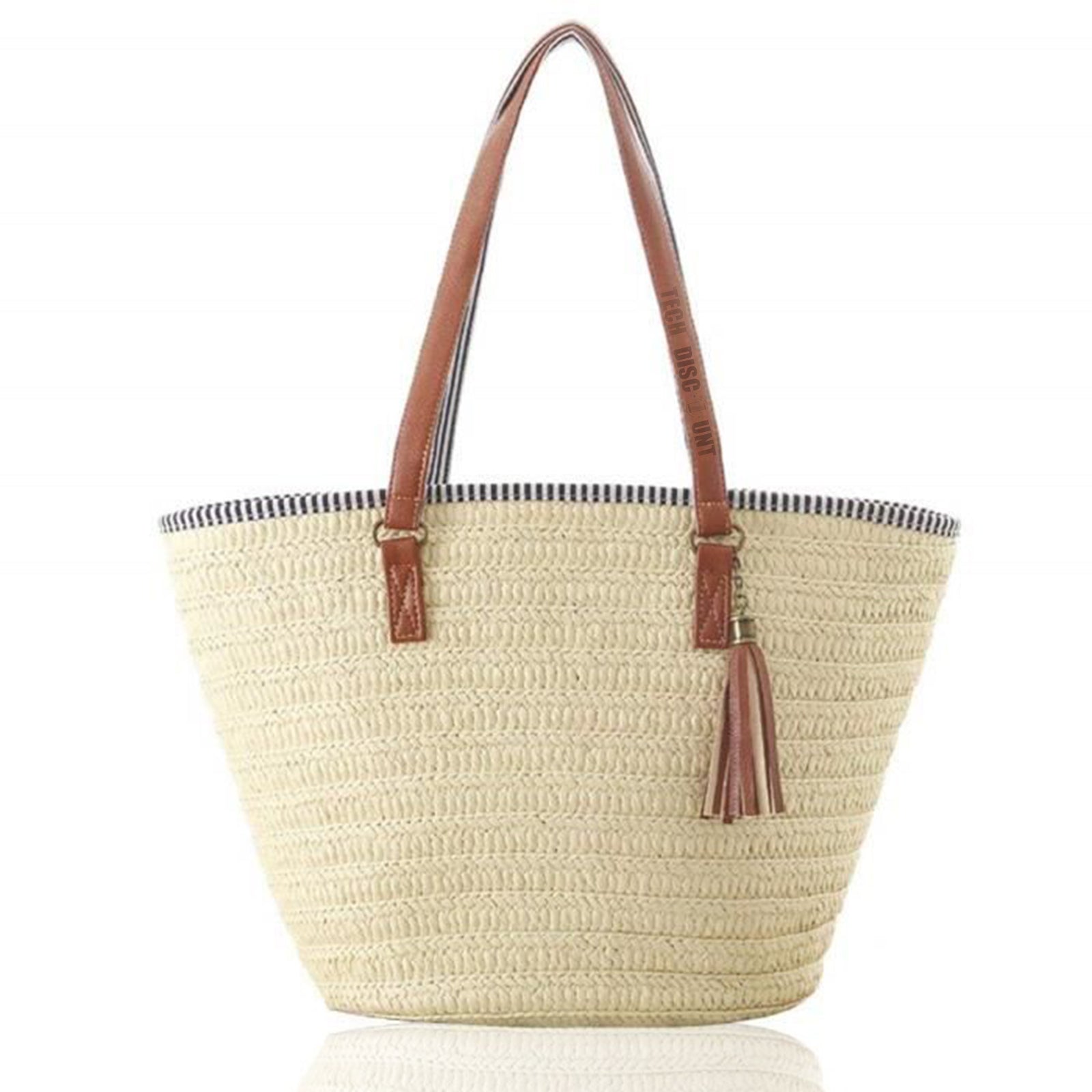 TD® Sac tissé à bandoulière simple européen et américain Sac pour femmes de plage Sac de paille Sac de paille pendentif gland de mod