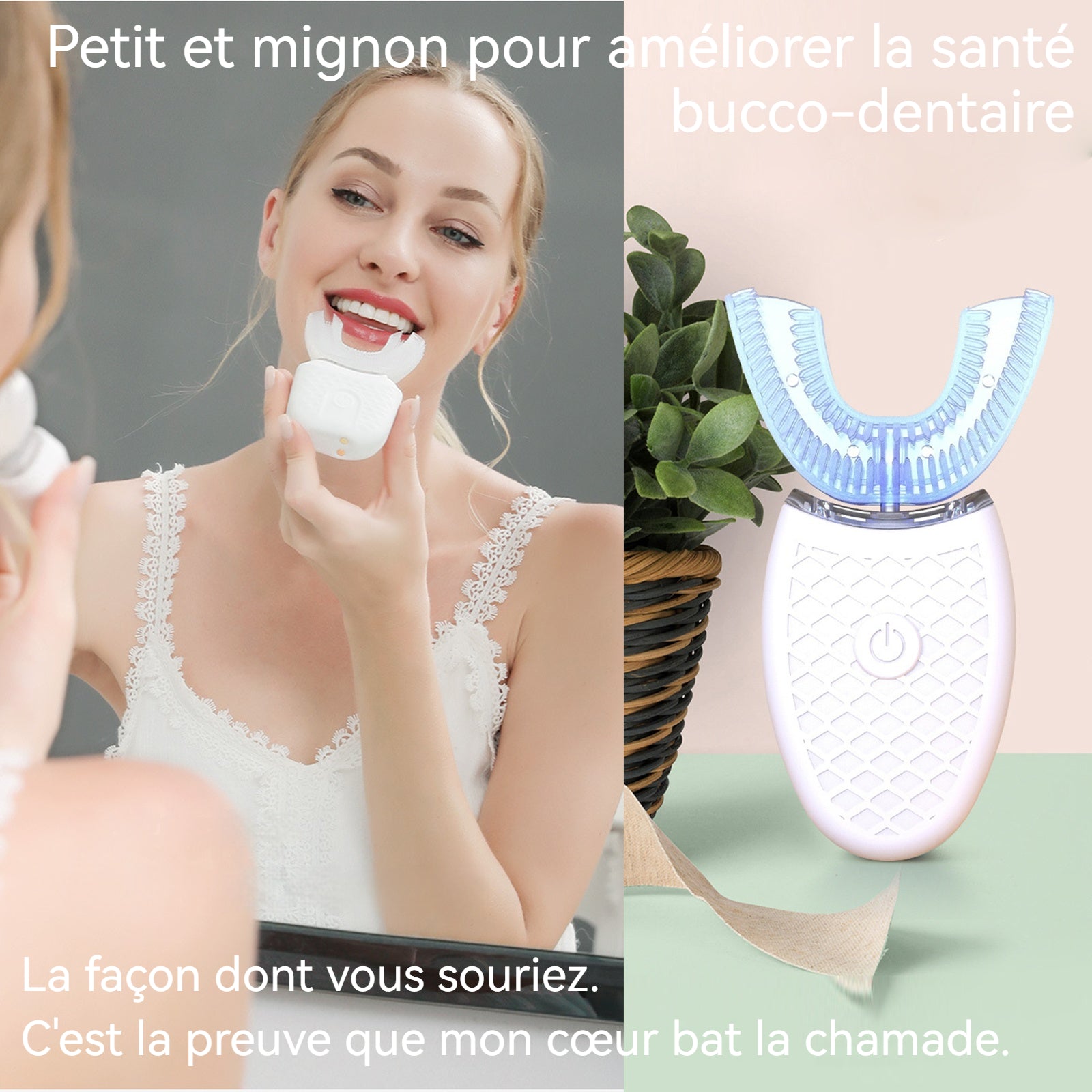 Brosse à Dents Adulte En Forme De U 400mah Nettoyage des dents par ultrasons blanchiment par lumière bleue moussage automatique