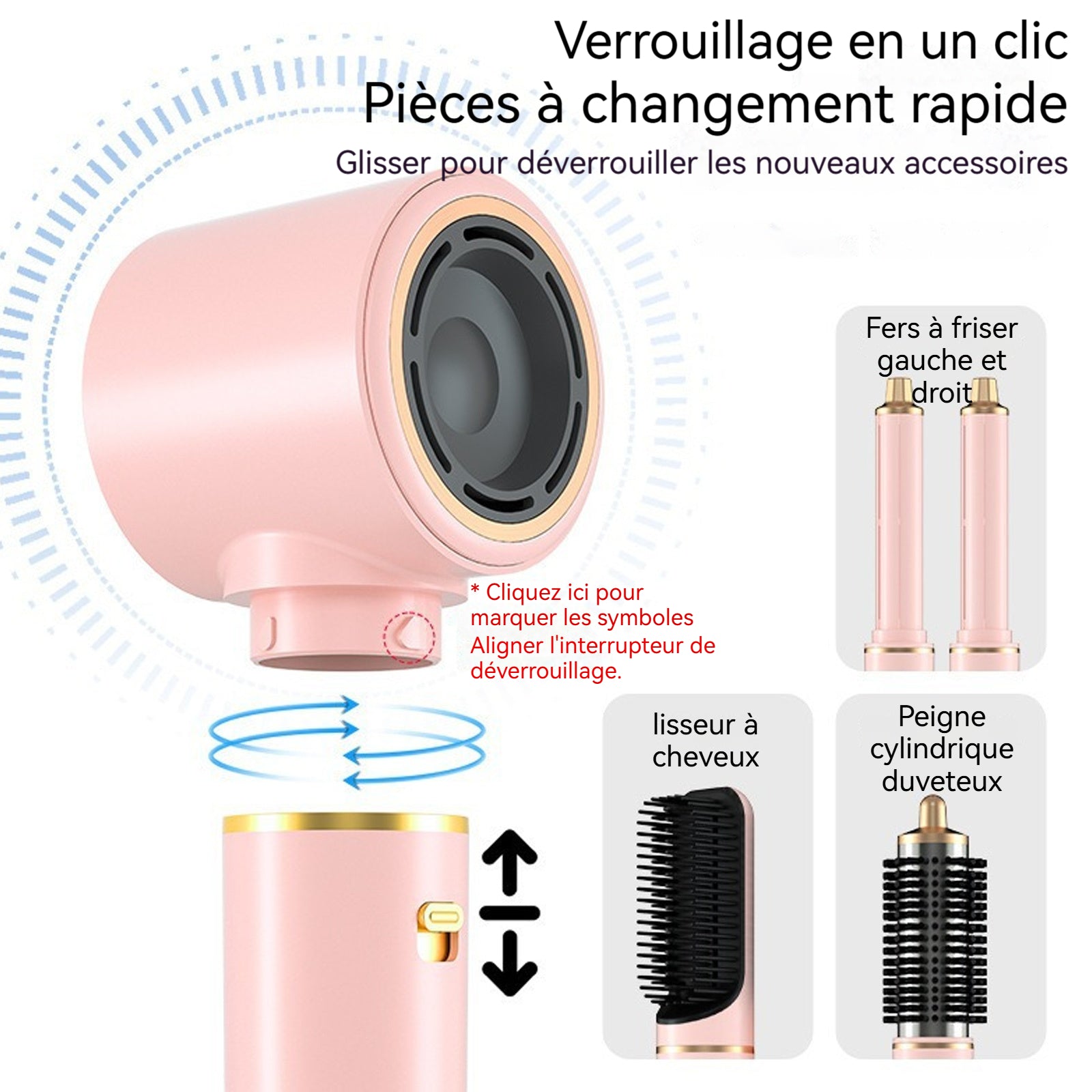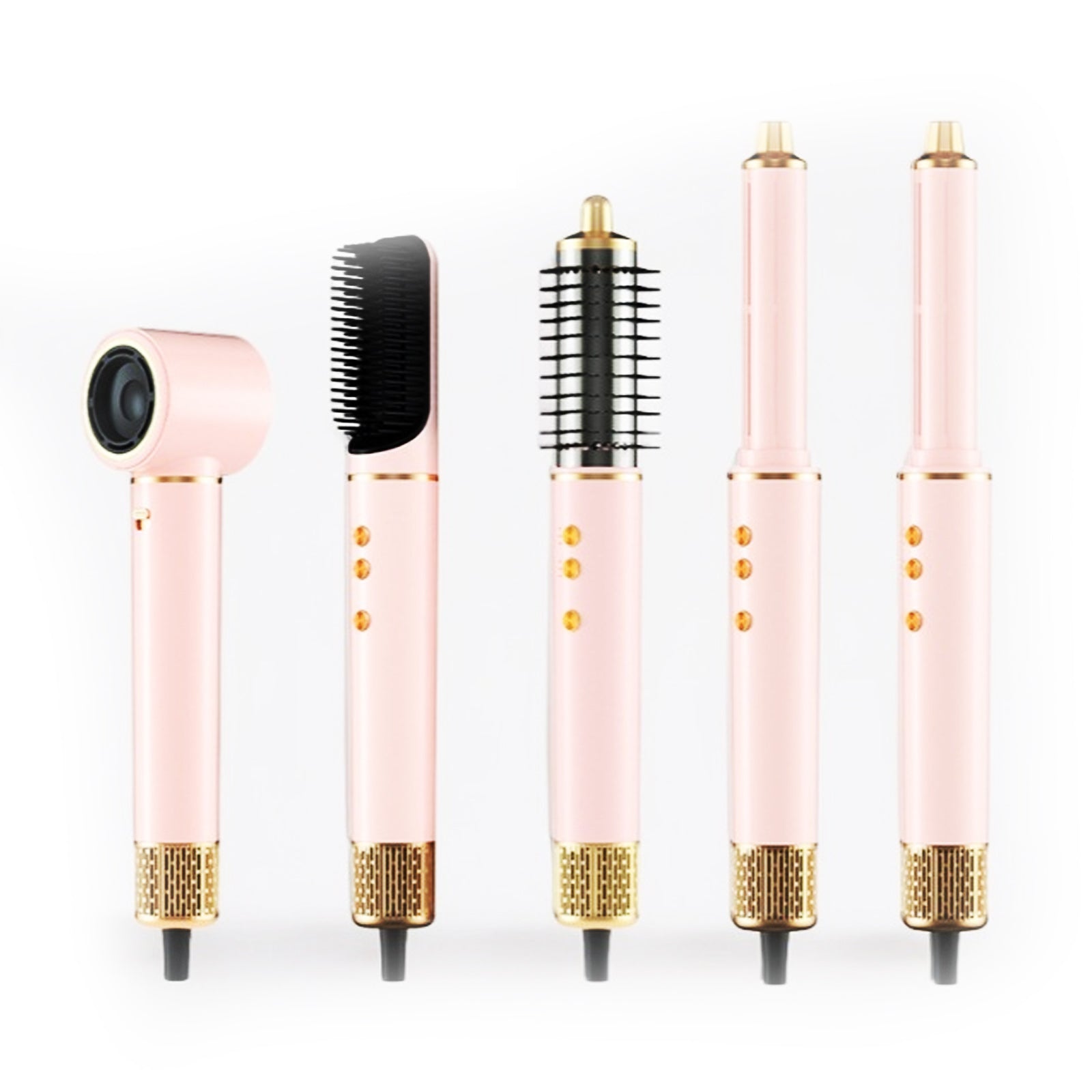 Ensemble brosse soufflante rose multifonctionnel 1250w 5 en 1 3 réglages de température brosse seche cheveux brosse sèche-cheveux