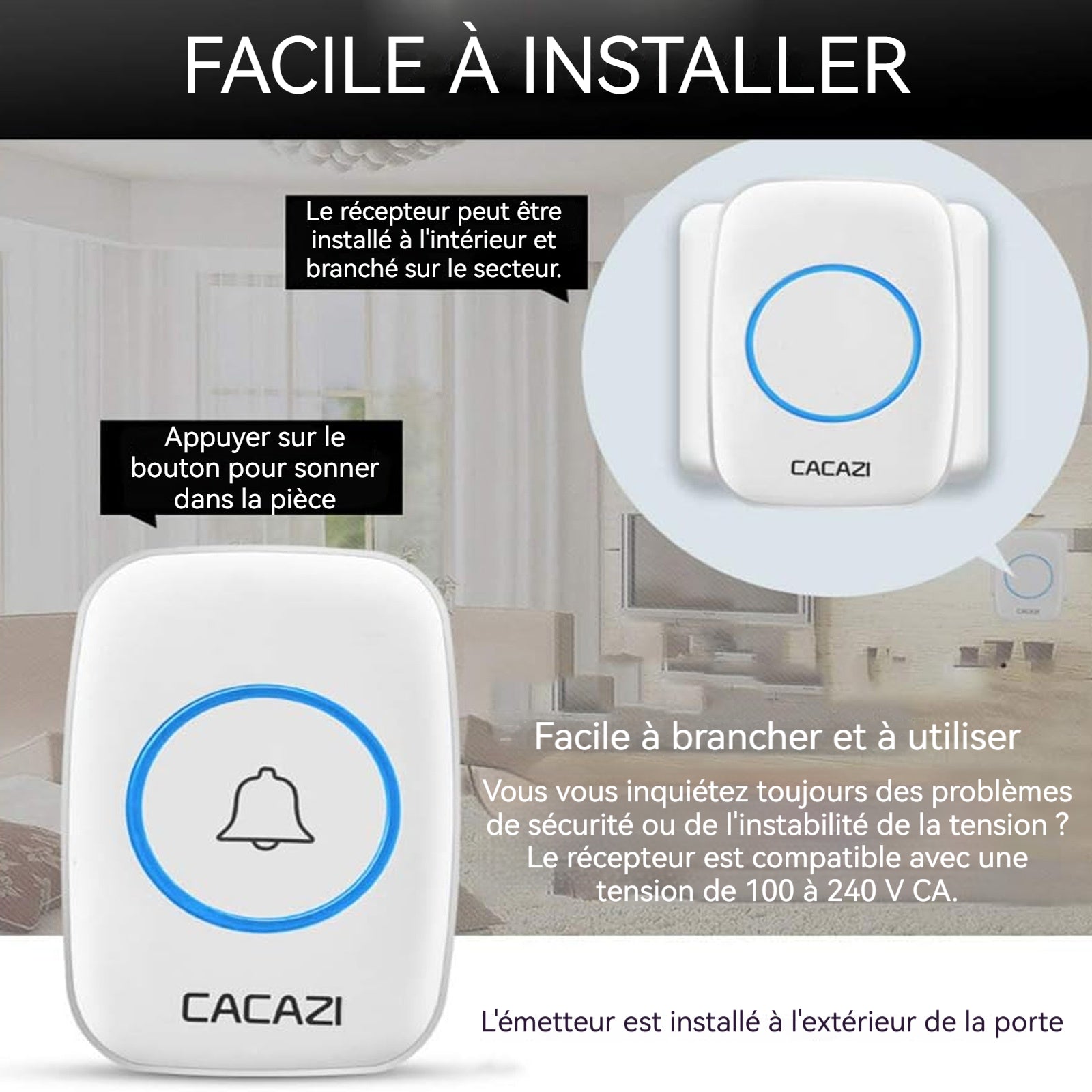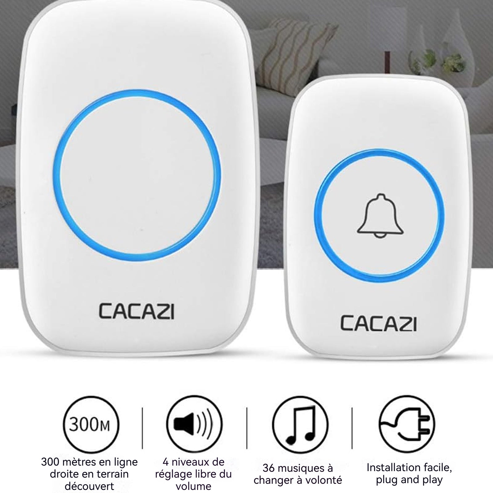 Sonnette sans fil 2 émetteurs 3 récepteurs portée de travail de 300 m sonnette de porte électronique sans fil avec des piles blanc
