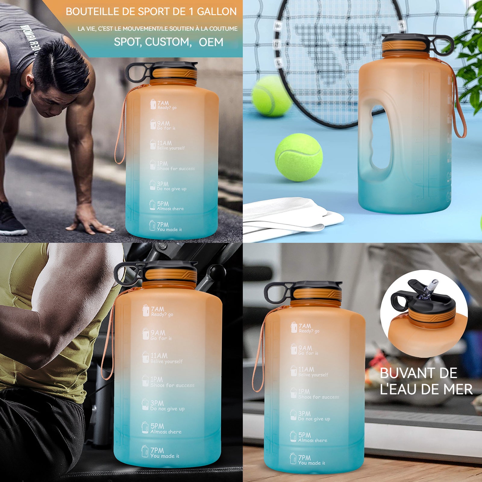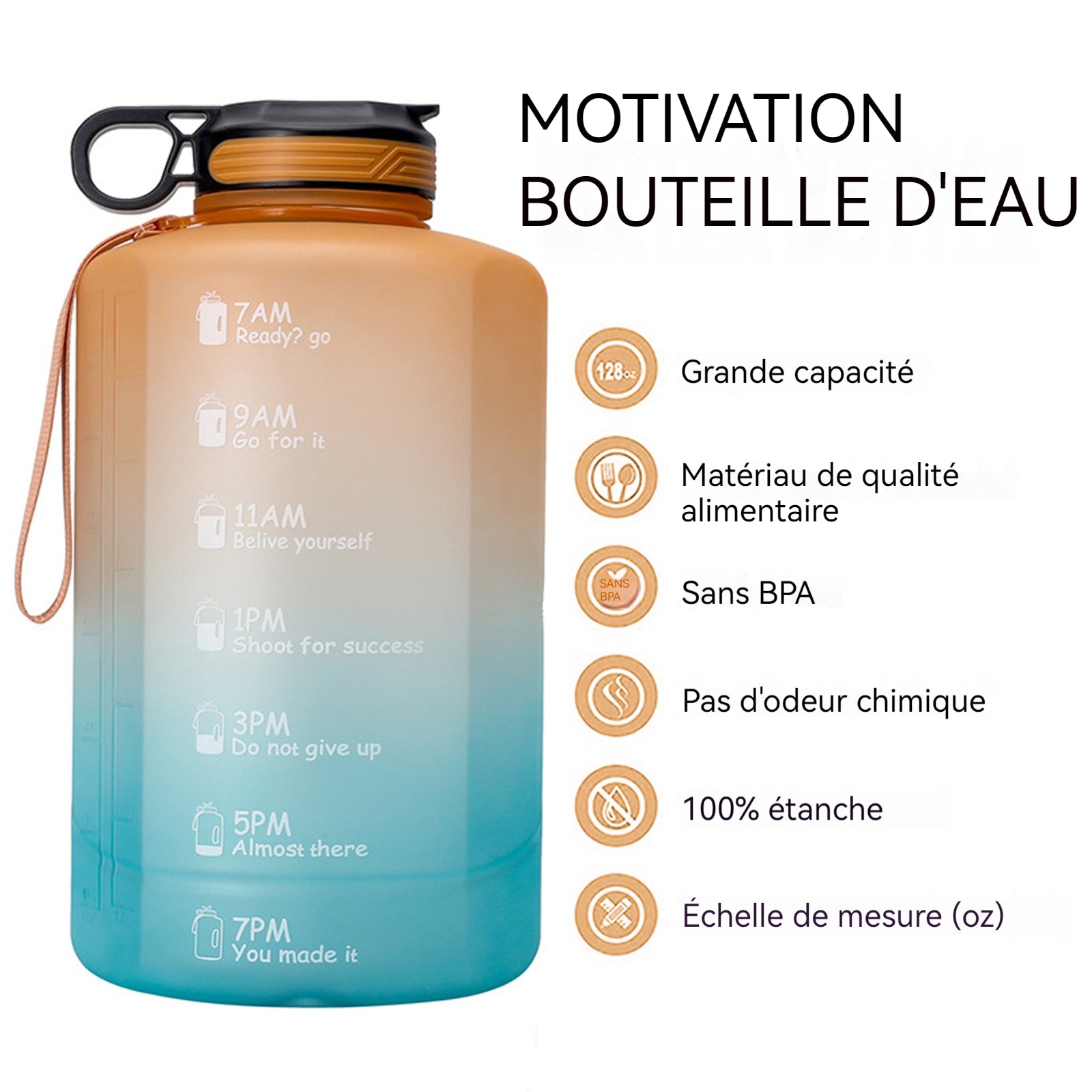Bouteille d'eau 3.78L grande capacité gourde sport avec poignée portable conception à double échelle bouilloire de couleur dégradée