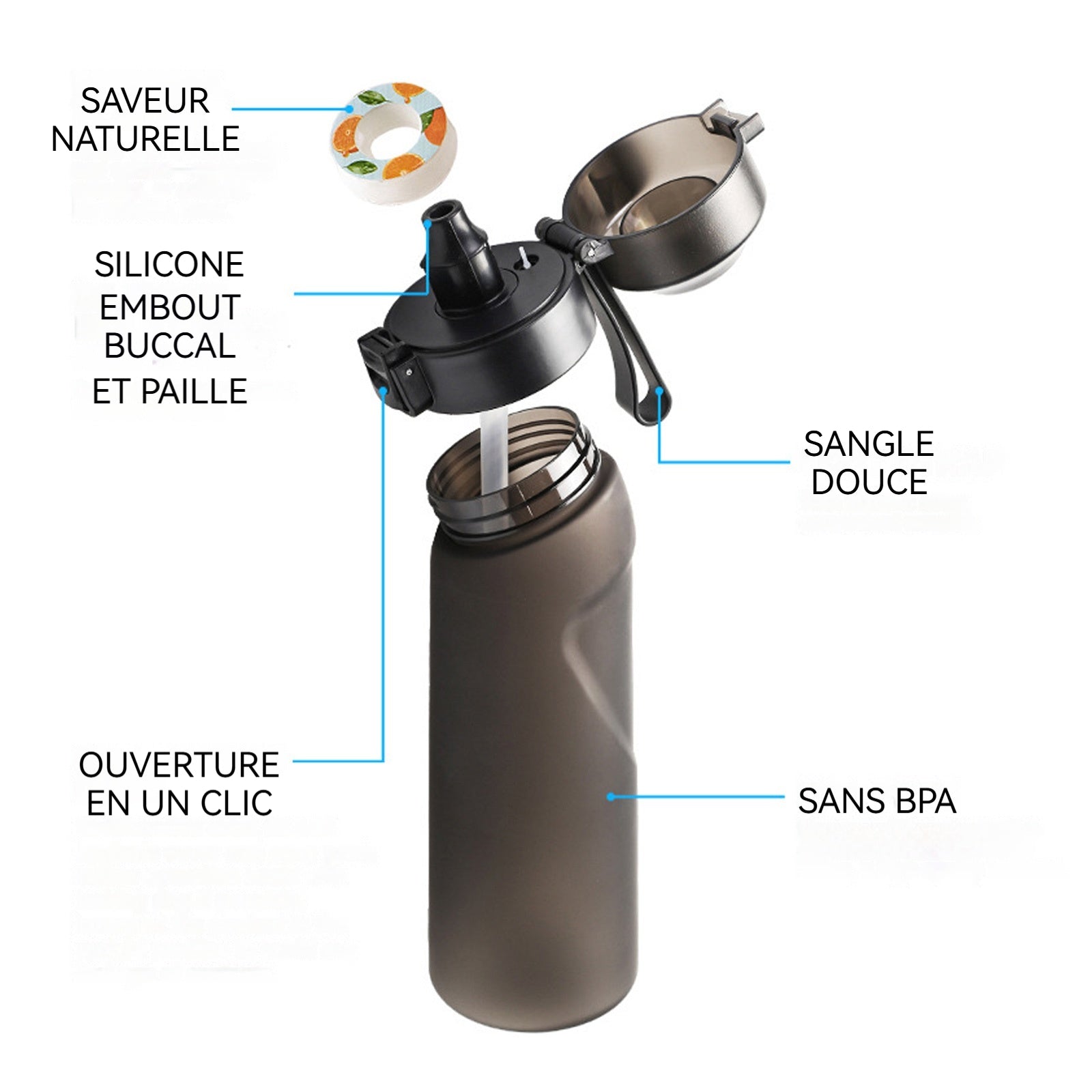 3. Zéro sucre, 0 calorie : Boire de l'eau avec une gourde de manière sûre et durable est idéal pour une boisson saine. 7 saveurs différentes offrent une expérience de consommation inédite. La capsule aromatisante est sans calories ni sucre.