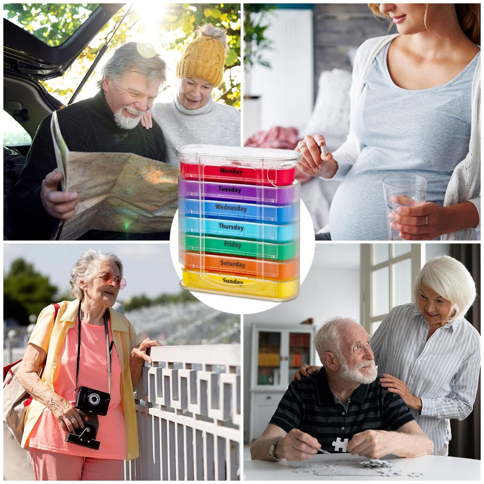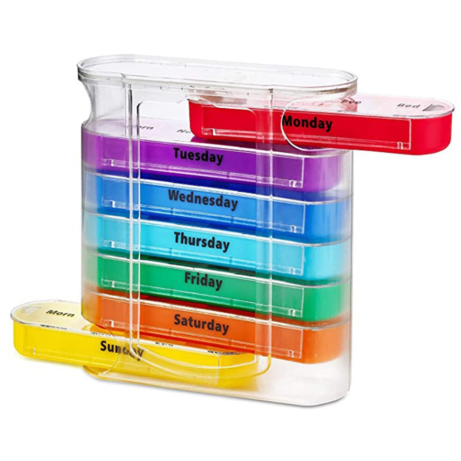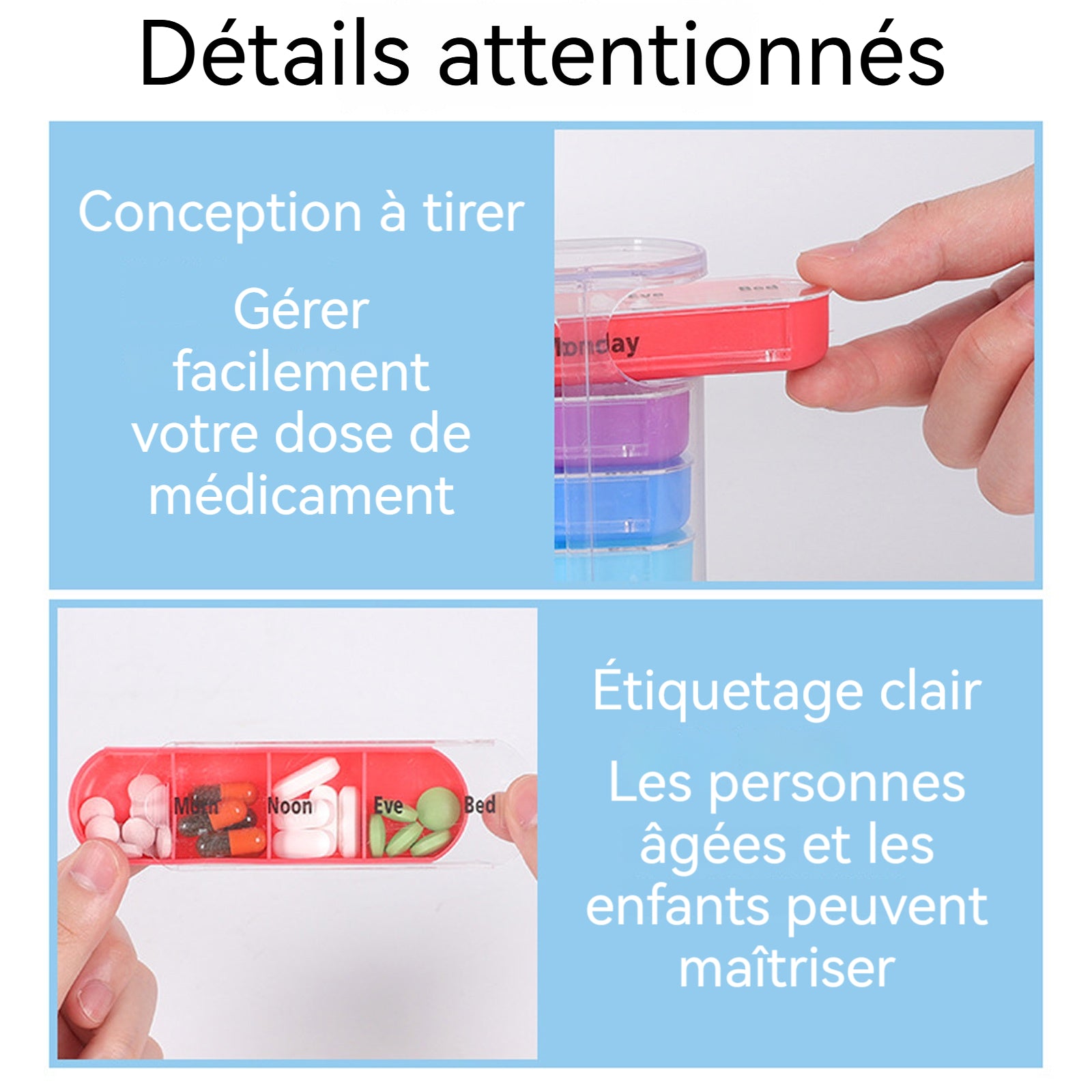 Pilulier 13 cm 28 compartiments pour 7 jours Matériau sans BPA Quatre périodes par jour Facile à identifier et à ranger efficacement