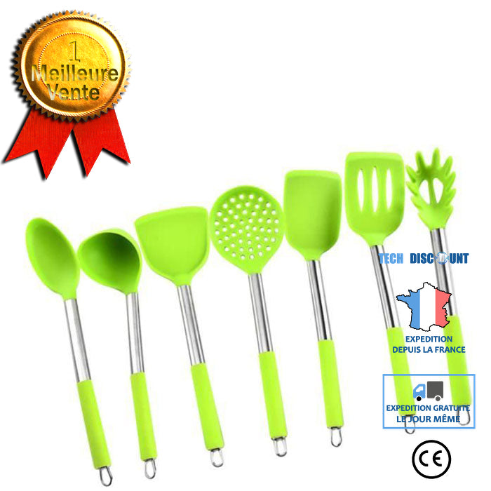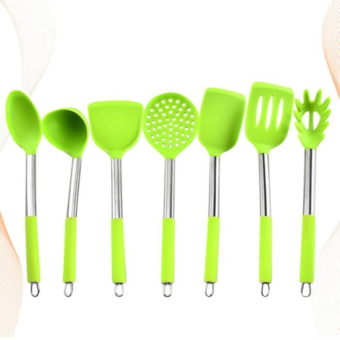 7 x ustensiles de cuisineKITCHEN ACCESSORY SET Fabriqué en silicone sûr, de haute ténacité et résistant aux températures élevées.♥Un matériau souple vous aide à protéger votre casserole ou pot des égratignures.♥Cet ensemble d’ustensiles est imperméable, antirouille, antiadhésif et facile à nettoyer.♥Plusieurs formes d’ustensiles de cuisine