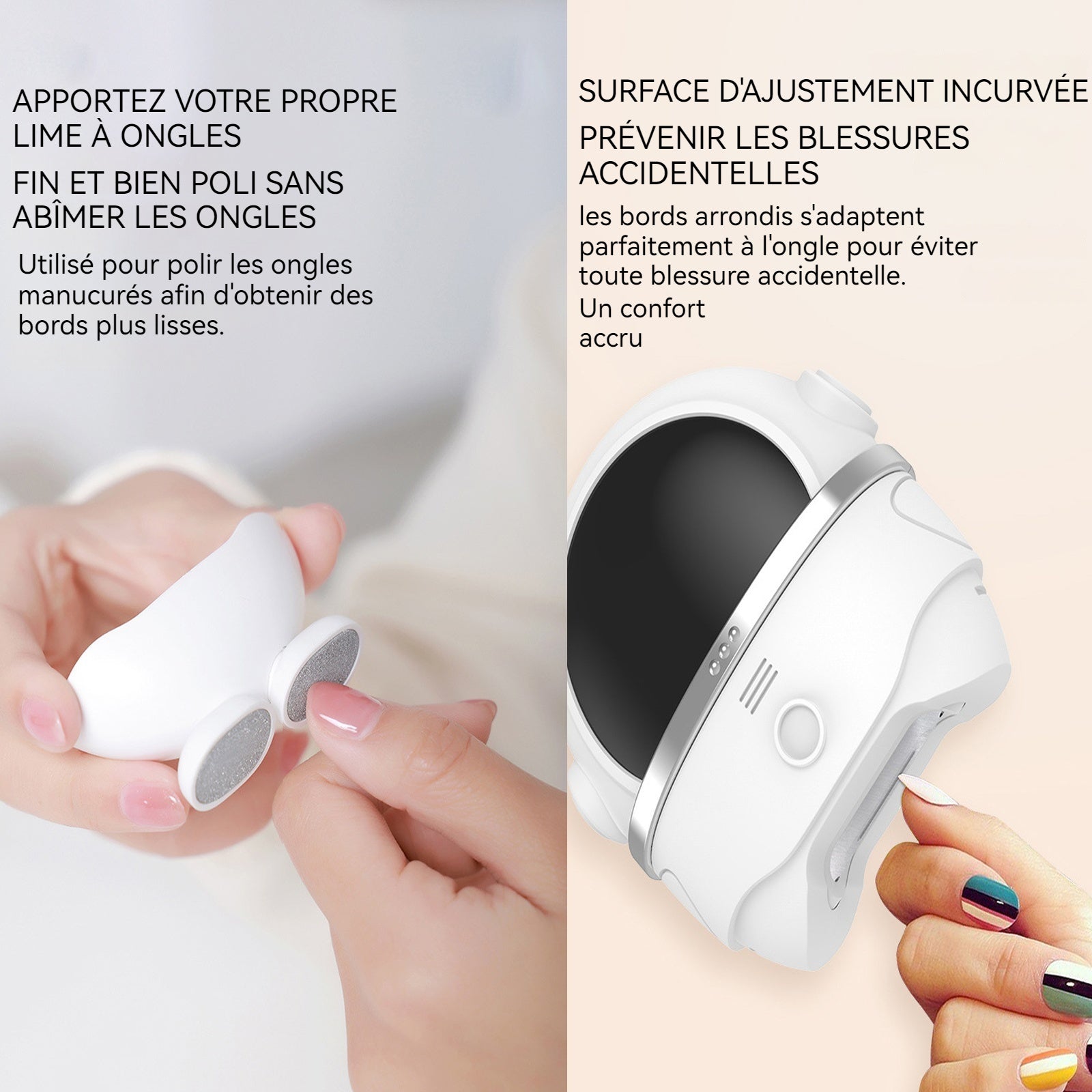 3. Coupe-ongles rechargeable par USB : Ce produit se recharge via USB, le coupe-ongles est entièrement chargé en 2 heures et peut être utilisé pour couper les ongles 50 fois en continu.