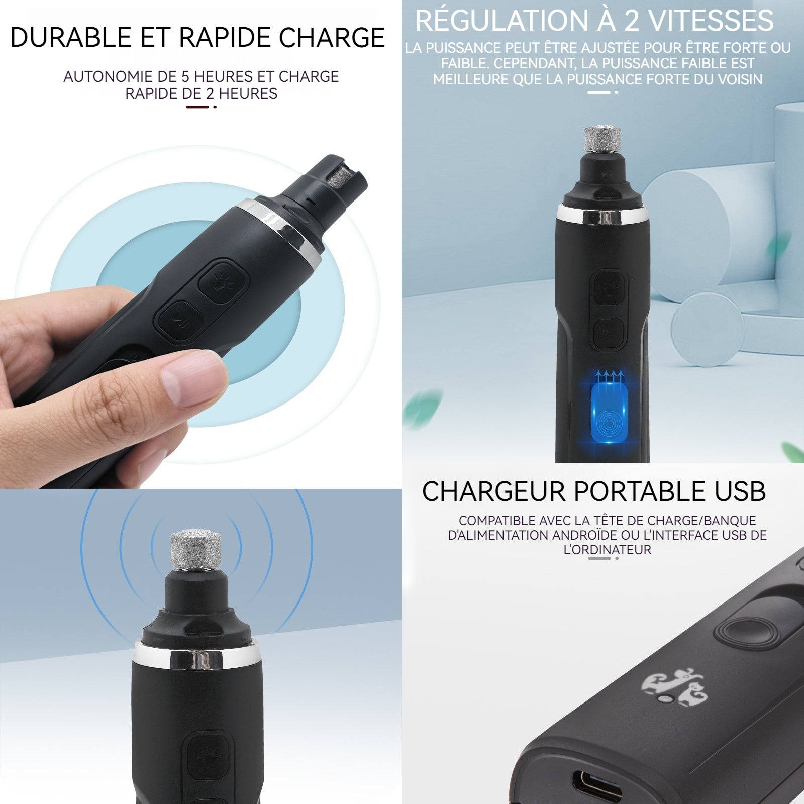 Lime à ongles chien 2 vitesses coupe-ongles électrique pour chien lime à ongles pour chat vernis à ongles pour animaux de compagnie