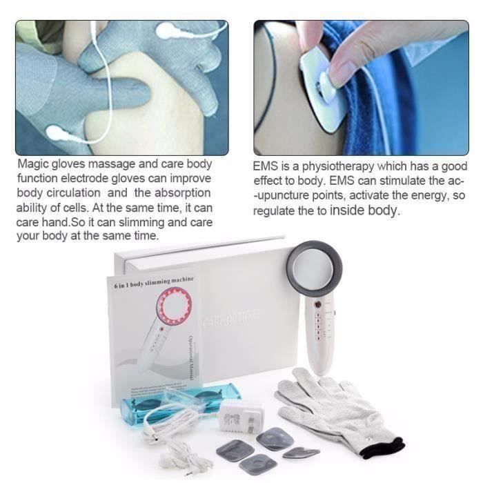 Type de l'article: Massage et relaxationMatériel: Matériaux compositesProduct Name : 6 In 1 Ultrasound Cavitation Slimming MachineVoltage: 100-240VUltrasonic frequency: 1million/sTechnology: ltrasonic, positive/negative ions, red/blue lightType de l'article: Massage et relaxationMatériel: Matériaux compositesProduct Name : 6 In 1 Ultrasound Cavitation Slimming MachineVoltage: 100-240VUltrasonic frequency: 1million/sTechnology: ltrasonic, positive/negative ions, red/blue light