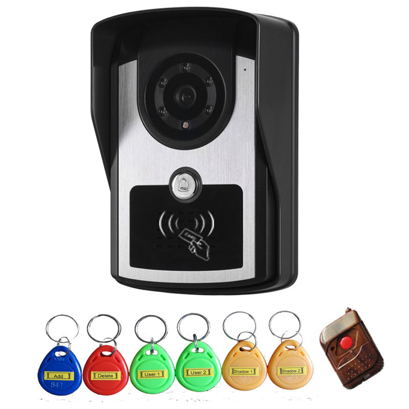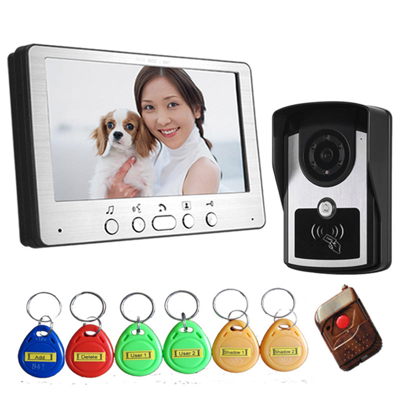 Sonnette de porte visible 7 pouces avec fonction de télécommande à carte magnétique Panneau en aluminium brossé 1000 lignes HD