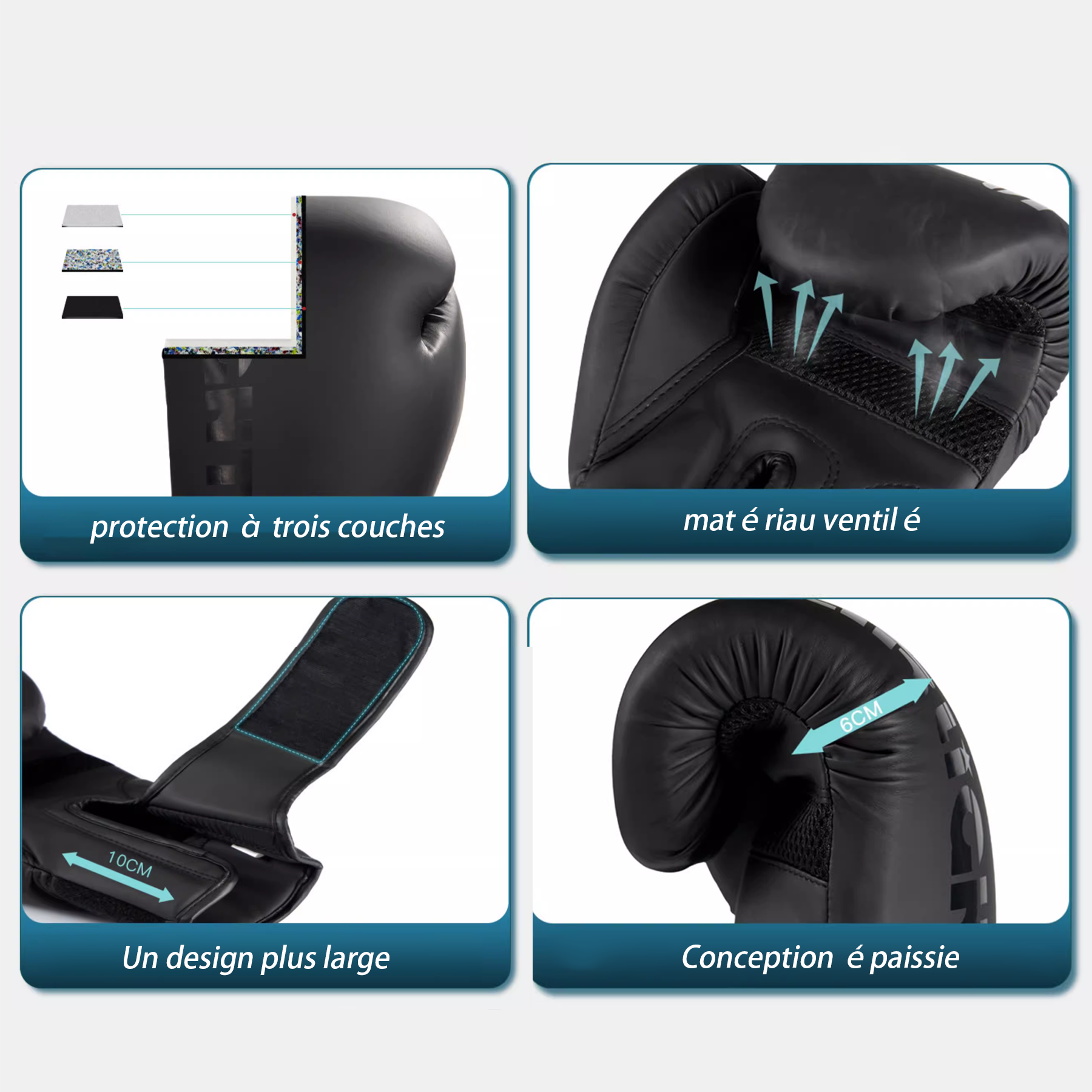 4. Effet d'amortissement : Les gants de boxe utilisent un rembourrage pour réduire la force des coups et minimiser les blessures infligées à l'adversaire.