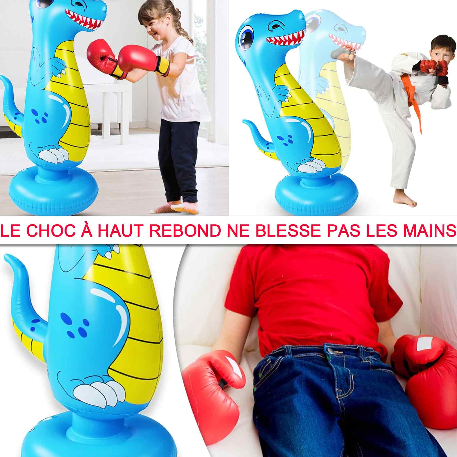 4. Rembond instantané : Le sac de boxe gonflable rebondit instantanément, permettant aux enfants de frapper sans retenue et de profiter du plaisir du sport.