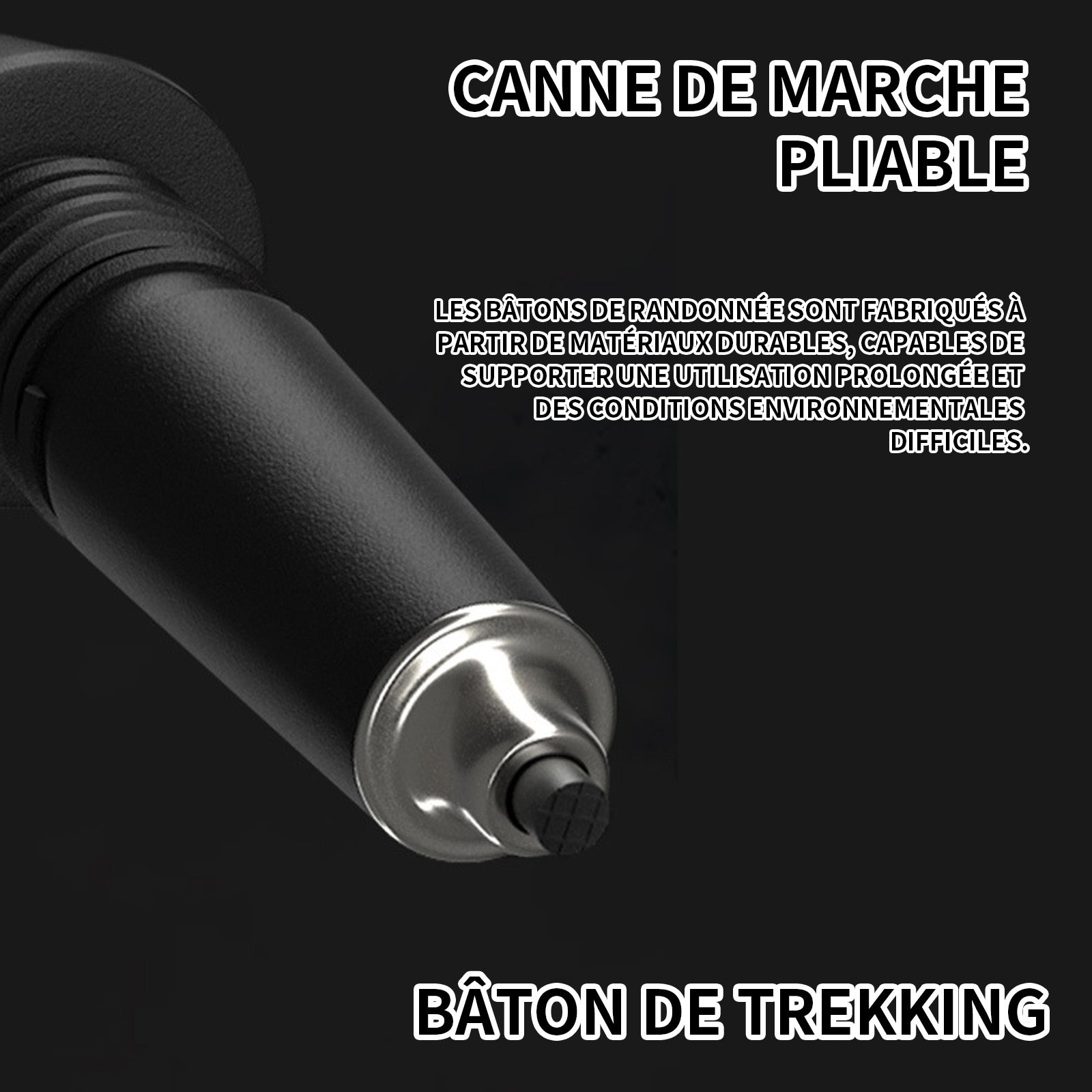 2.Grande durabilité:Les bâtons de randonnée sont fabriqués à partir de matériaux durables, capables de supporter une utilisation prolongée et des conditions environnementales difficiles.