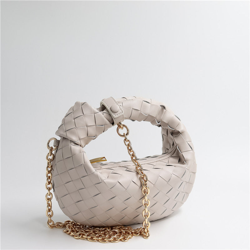 Nouveau sac en cuir chaîne rides boulette sac en cuir véritable aisselle tissé sac à la mode Messenger croissant sac femmes
