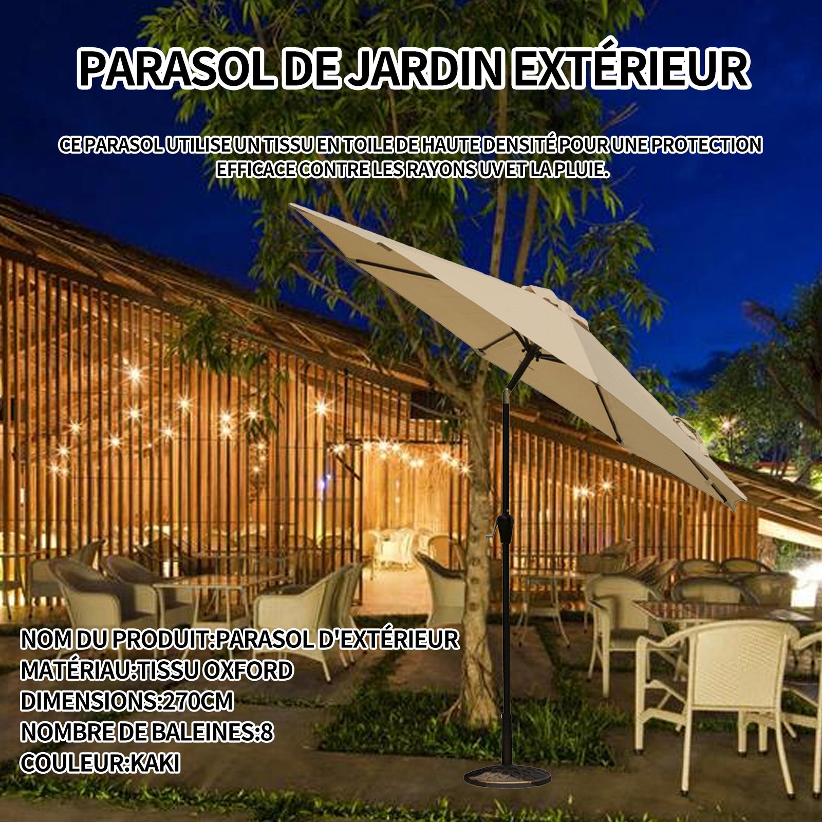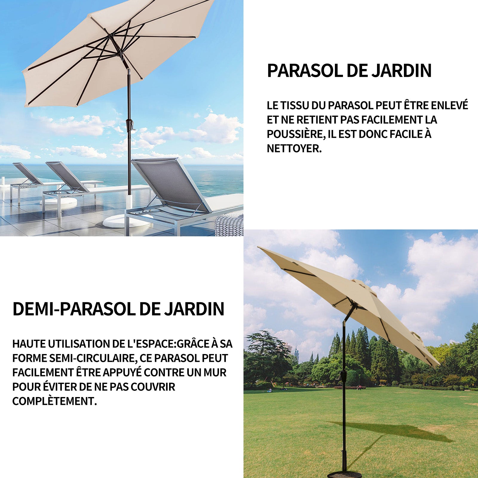 Parasol de jardin 2.7m parasol de jardin extérieur pare-soleil inclinable parapluie de jardin en demi-cercle pare-soleil extérieur