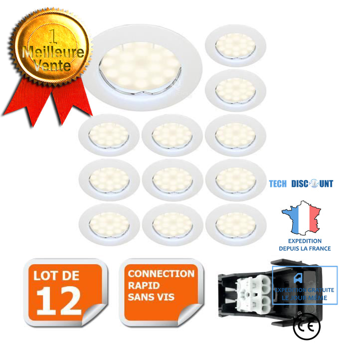 TD® Lot de 12 LED complètes, éclairage intérieur extérieur pots de LED complète blanche encastrables puissance 5W halogène chaud