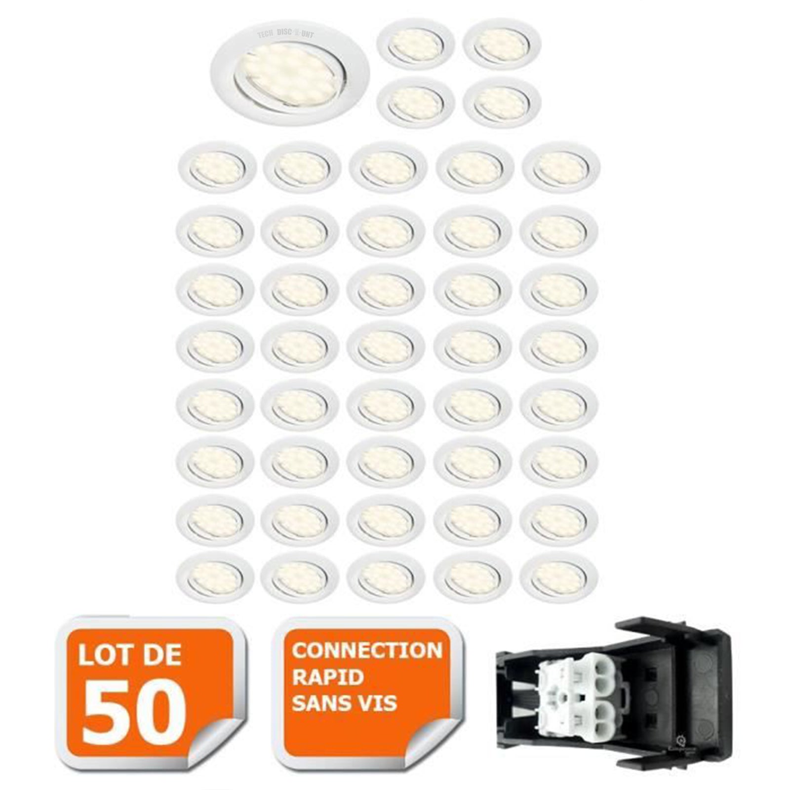 TD® Lot de 50 Spots Encastrables Oriantables / Blancs avec 6 Ampoules/ 230V eq. 50W, BLANC CHAUD