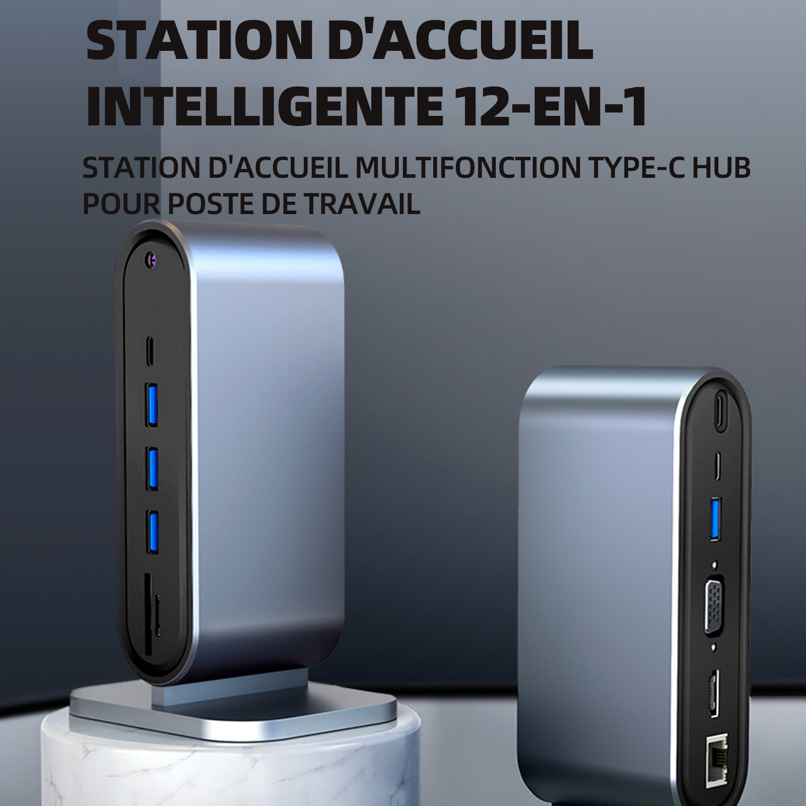 Station d'accueil 12 en 1 carte réseau haut débit charge rapide PD ports USB-C VGA et HD 4K/30hz gigabit ethernet et 4 ports USB 3.0