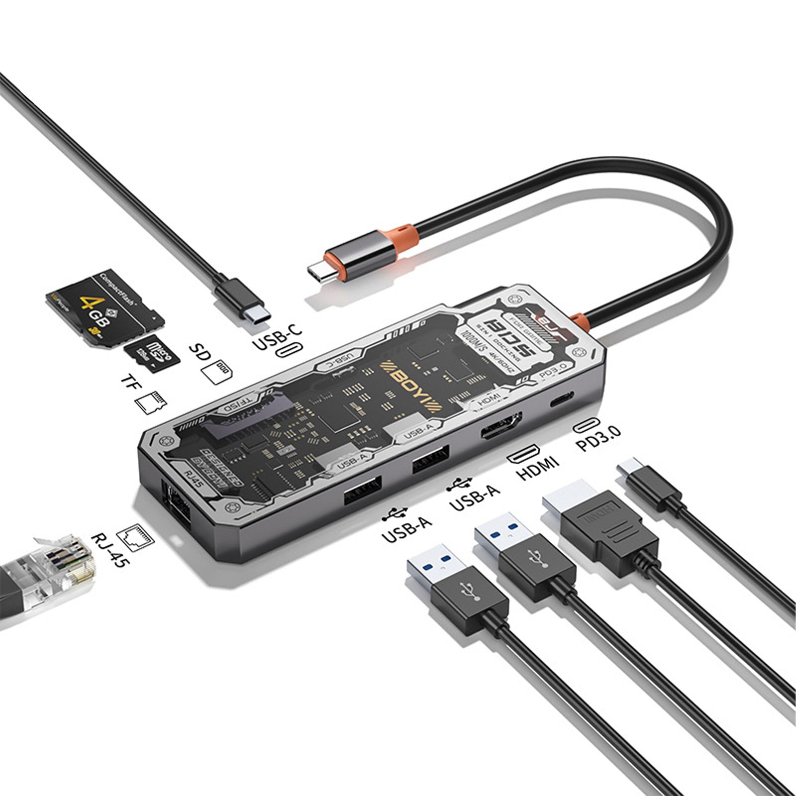 Station d'accueil 8 en 1 hub multi-interface port réseau gigabit audio sans perte TF/SD PD 100W compatible avec plusieurs systèmes