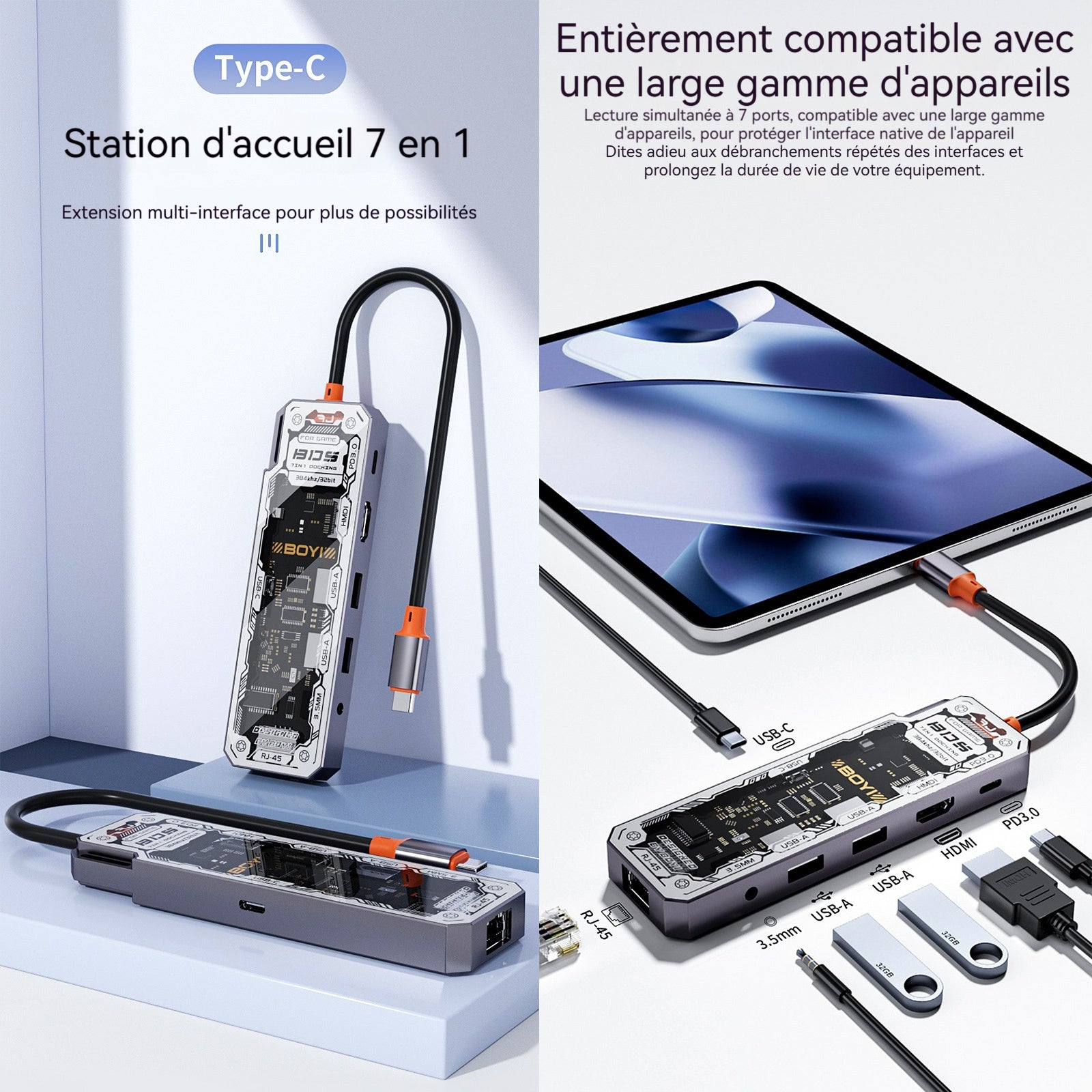 Nom du produit : Dock d'extension multifonction 8 en 1