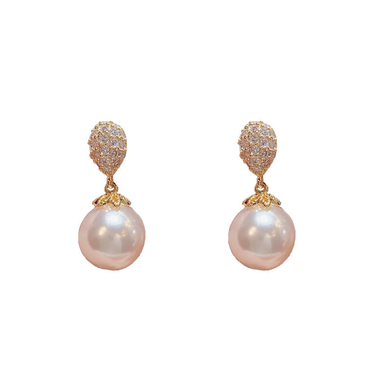 Boucles d'oreilles perle en argent 925 aiguille micropavée en zircon forme de goutte d'eau, boucles d'oreilles à la mode pour femmes