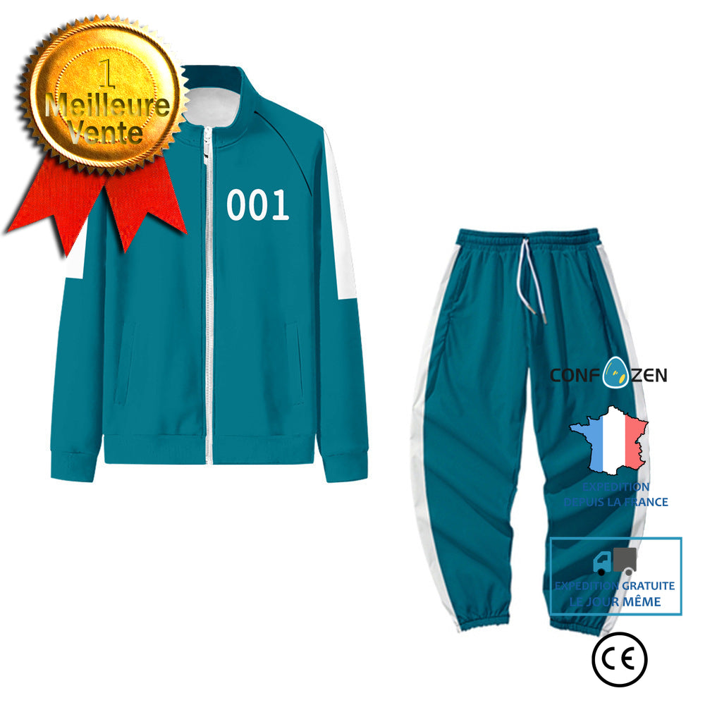 Squid Game Squid Game Suit Jacket Male Owner Park Haesu Le même vêtement sport Pull zippé à col montant Cyan Suit No. 001 Spo