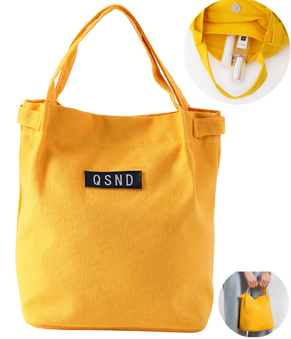 TD® Sac de pique-nique en toile de coton couleur pure/ Jaune Moutarde/ Sac Multifonctionnel portable isolé/ Sac à lunch