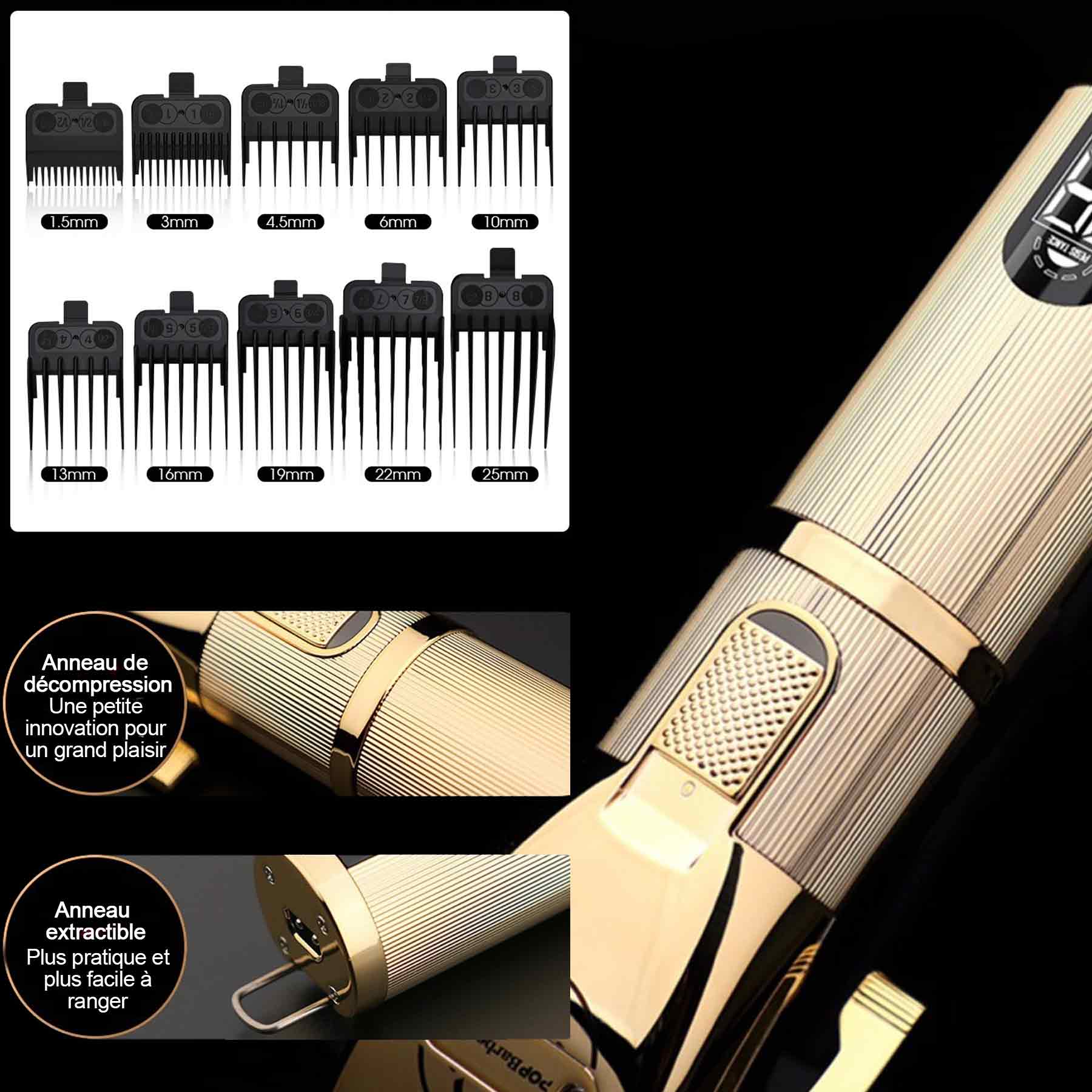 Tondeuse cheveux 7w 100-240V 50/60Hz tige de réglage à cinq vitesses tout en métal électrique intelligente affichage numérique