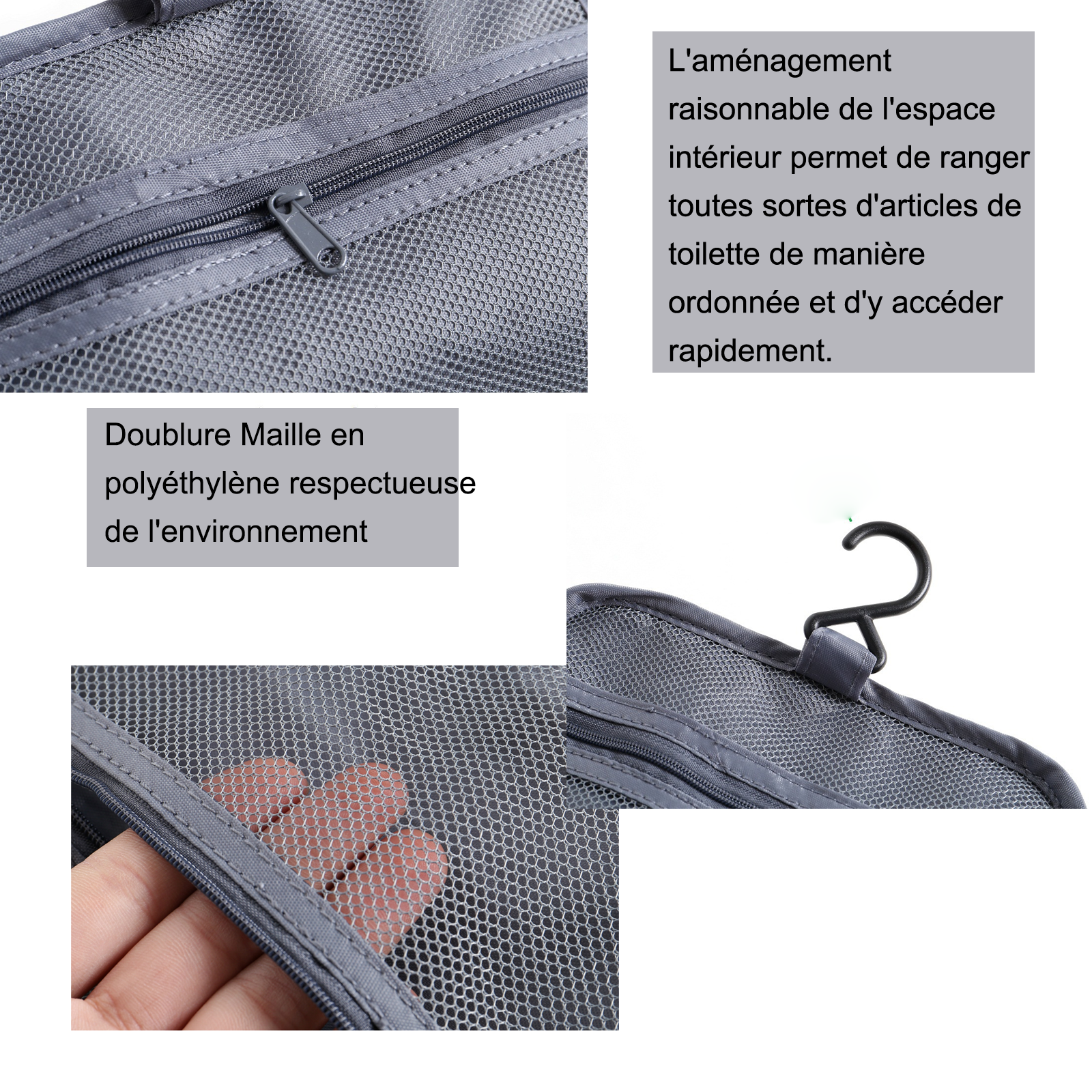 4.Conception multifonctionnelle : En tant que sac de rangement pour le voyage, il dispose d'un espace de rangement multifonctionnel permettant de classer et de ranger divers articles de toilette.
