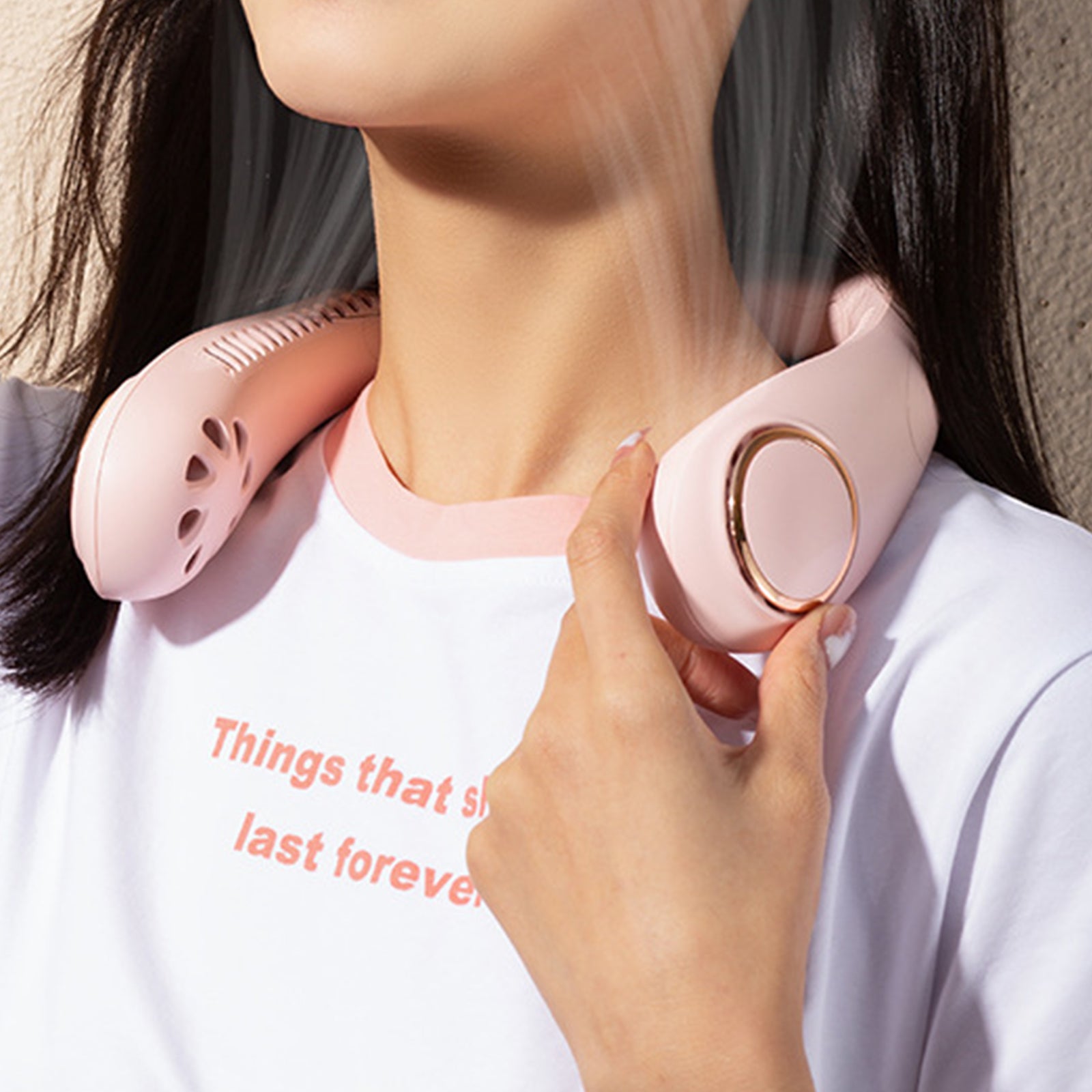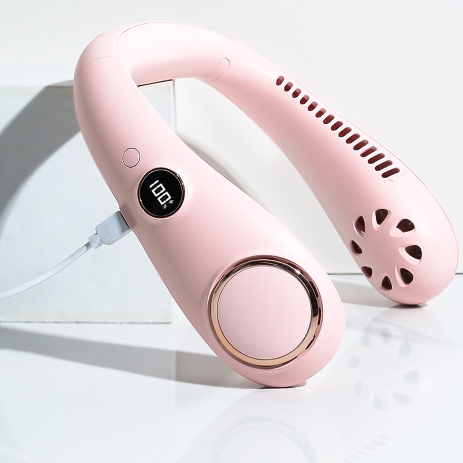 TD® Ventilateur de cou suspendu sans feuilles affichage numérique usb ventilateur de cou suspendu petit ventilateur de cou suspendu