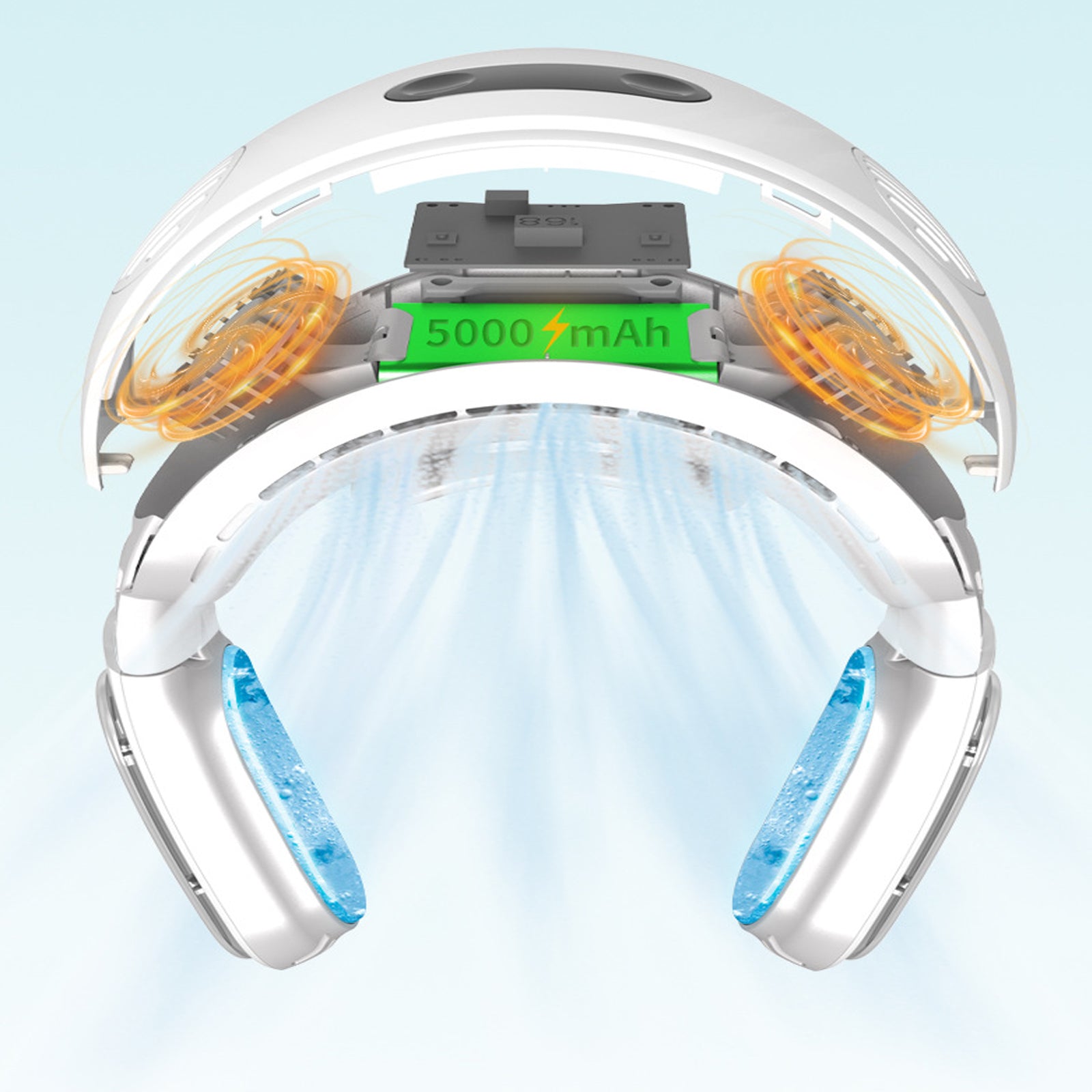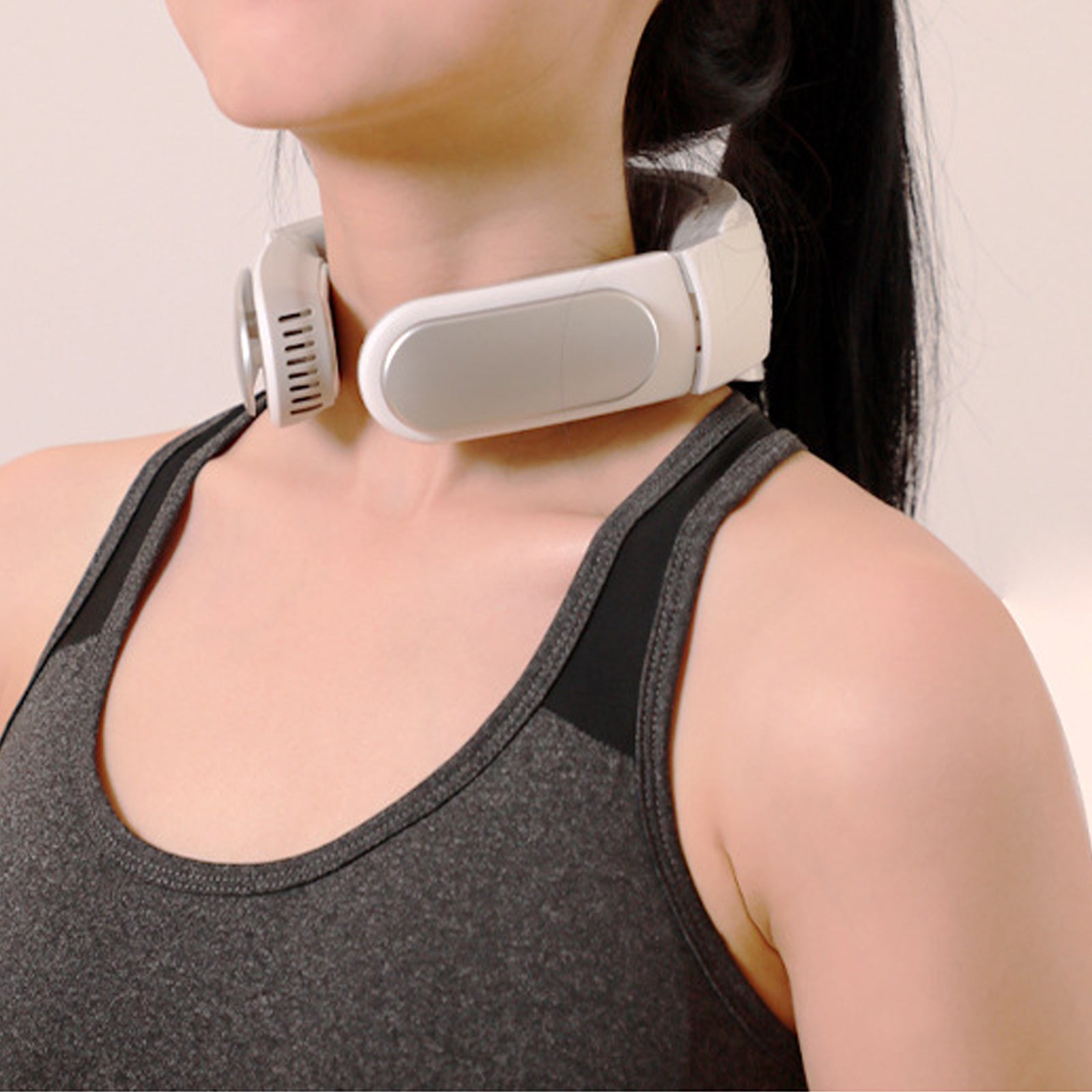 TD® Ventilateur de cou suspendu sans lames usb mini ventilateur blanc climatiseur design pliant portable extérieur réglable 3 vitess