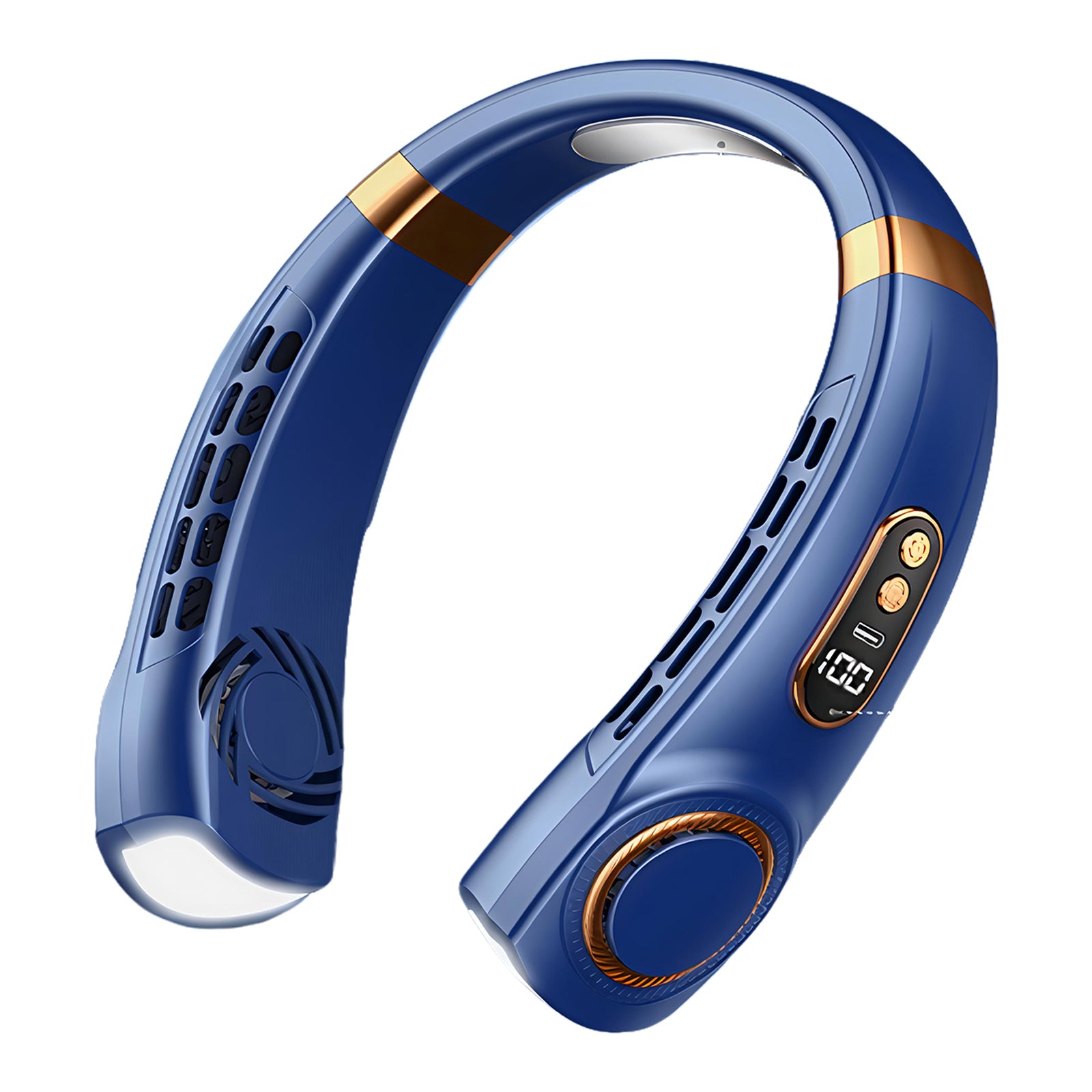 Ventilateur de cou portable multifonctionnel silencieux portatif USB mini ventilateur électrique sans pales longue durée bleu